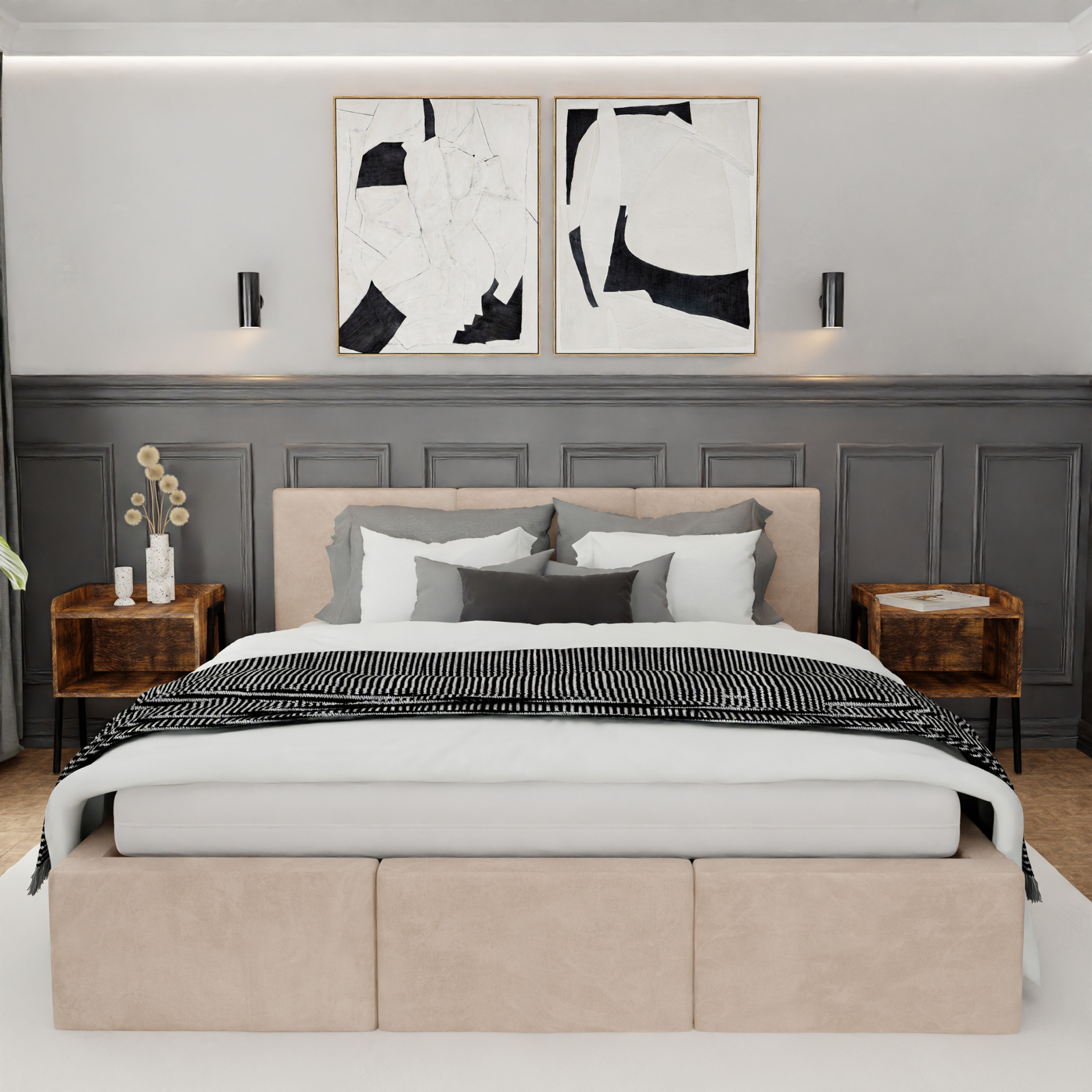Łóżko podwójne tapicerowane VALENTINO 140x200 pojemnik na pościel - Beżowy