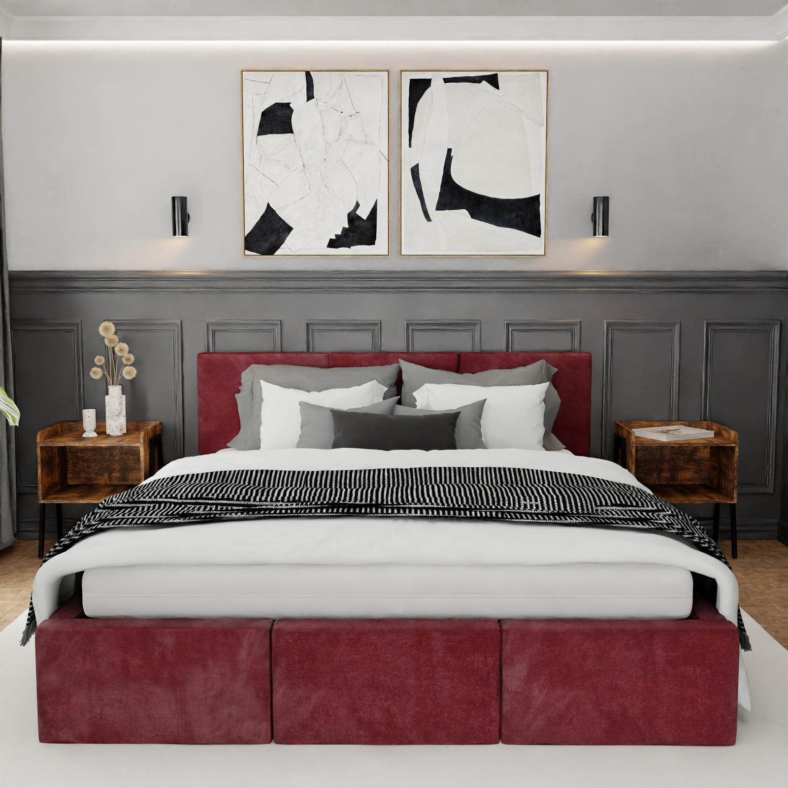 Łóżko VALENTINO to nie tylko komfortowy sen, ale także pewność, że wybierasz produkt stworzony z dbałością o każdy szczegół. Konstrukcja została wykonana z wytrzymałej płyty meblowej o odpowiedniej grubości, co przekłada się na wyjątkową stabilność i odporność na codzienne użytkowanie. To solidna podstawa, która zapewnia długowieczność mebla i wygodę przez wiele lat. Wszystkie krawędzie łóżka zostały starannie wykończone i zabezpieczone, co zwiększa bezpieczeństwo. Wybierając model VALENTINO, inwestujesz w niezawodność, estetykę i trwałość – cechy, które docenisz każdego dnia.