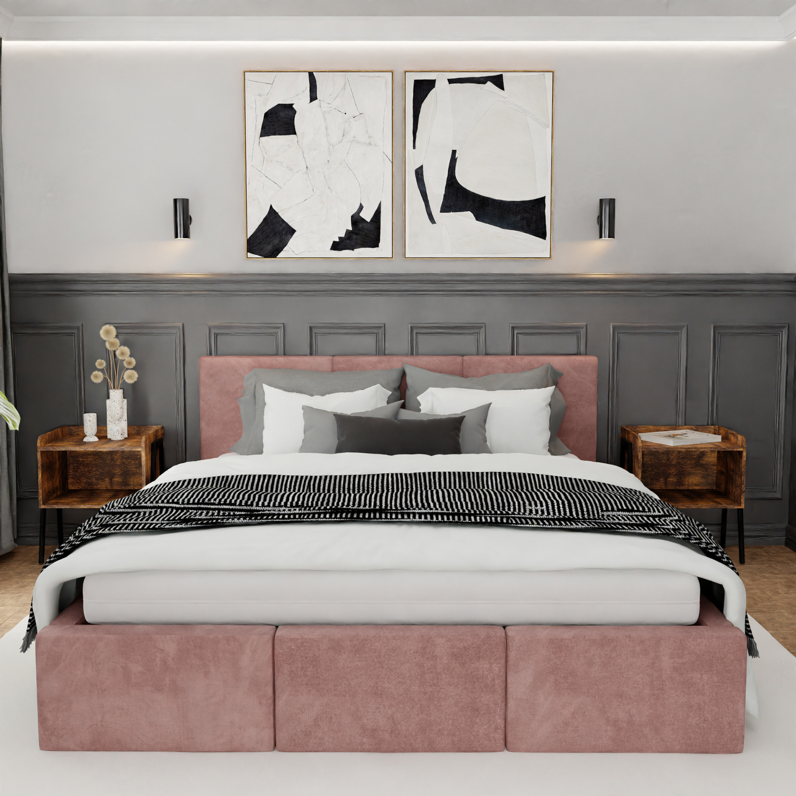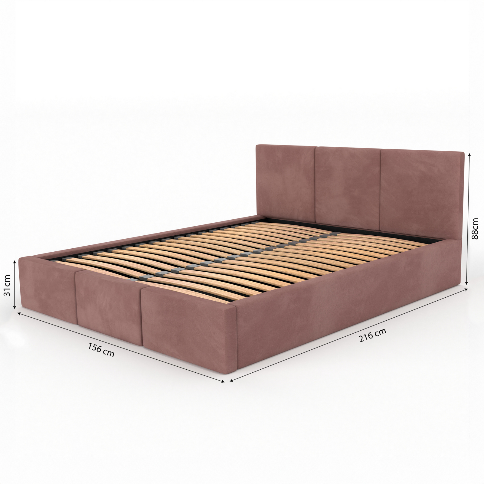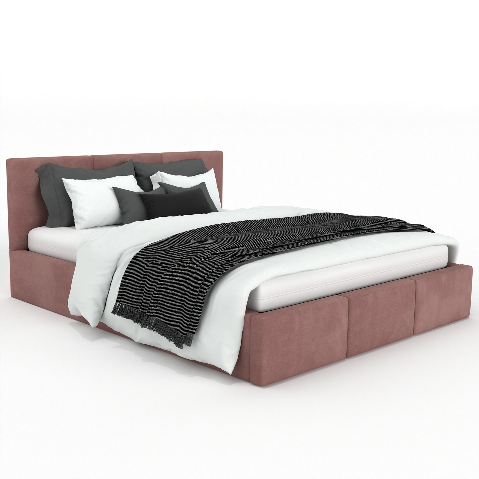 Łóżko podwójne tapicerowane VALENTINO 140x200 pojemnik na pościel - Brudny Róż