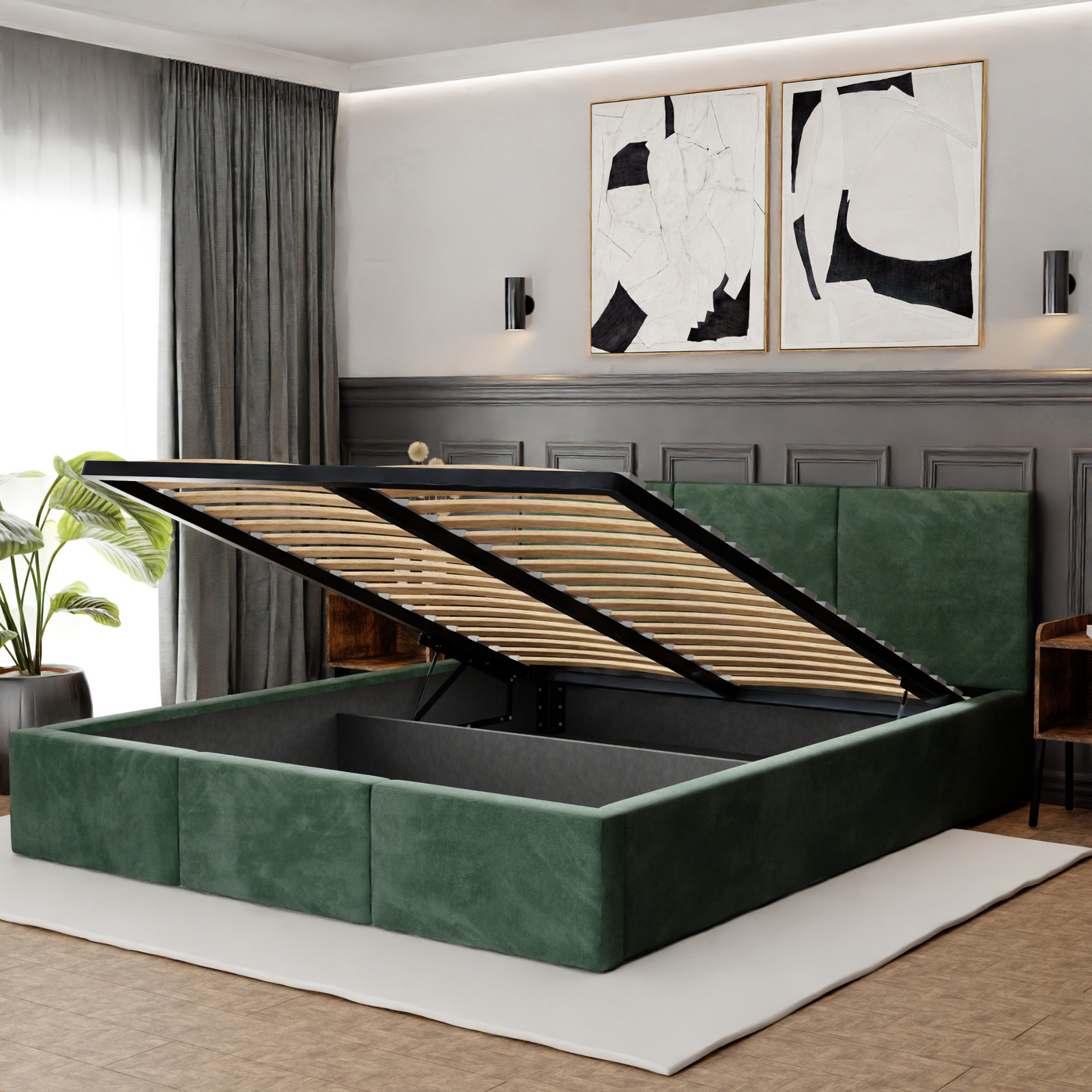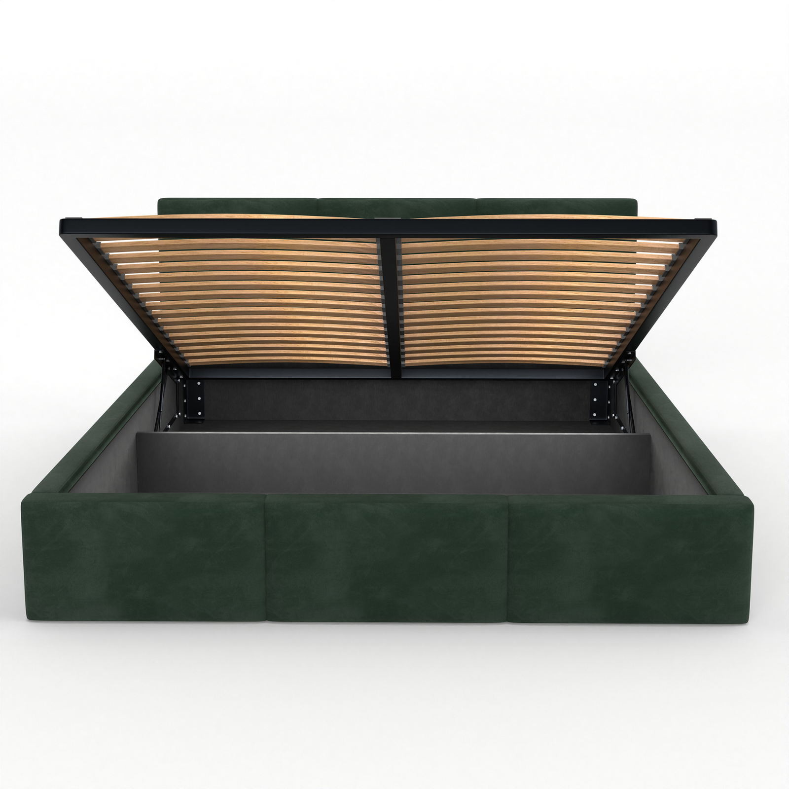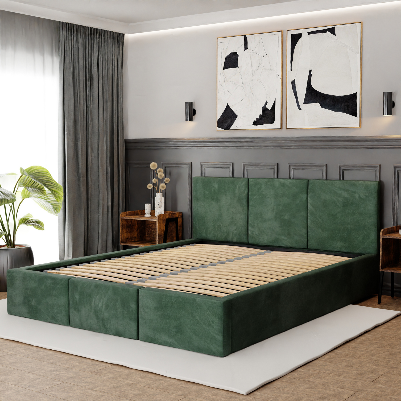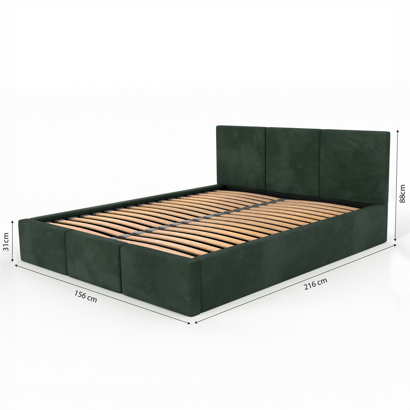 Łóżko podwójne tapicerowane VALENTINO 140x200 pojemnik na pościel - Butelkowa Zieleń
