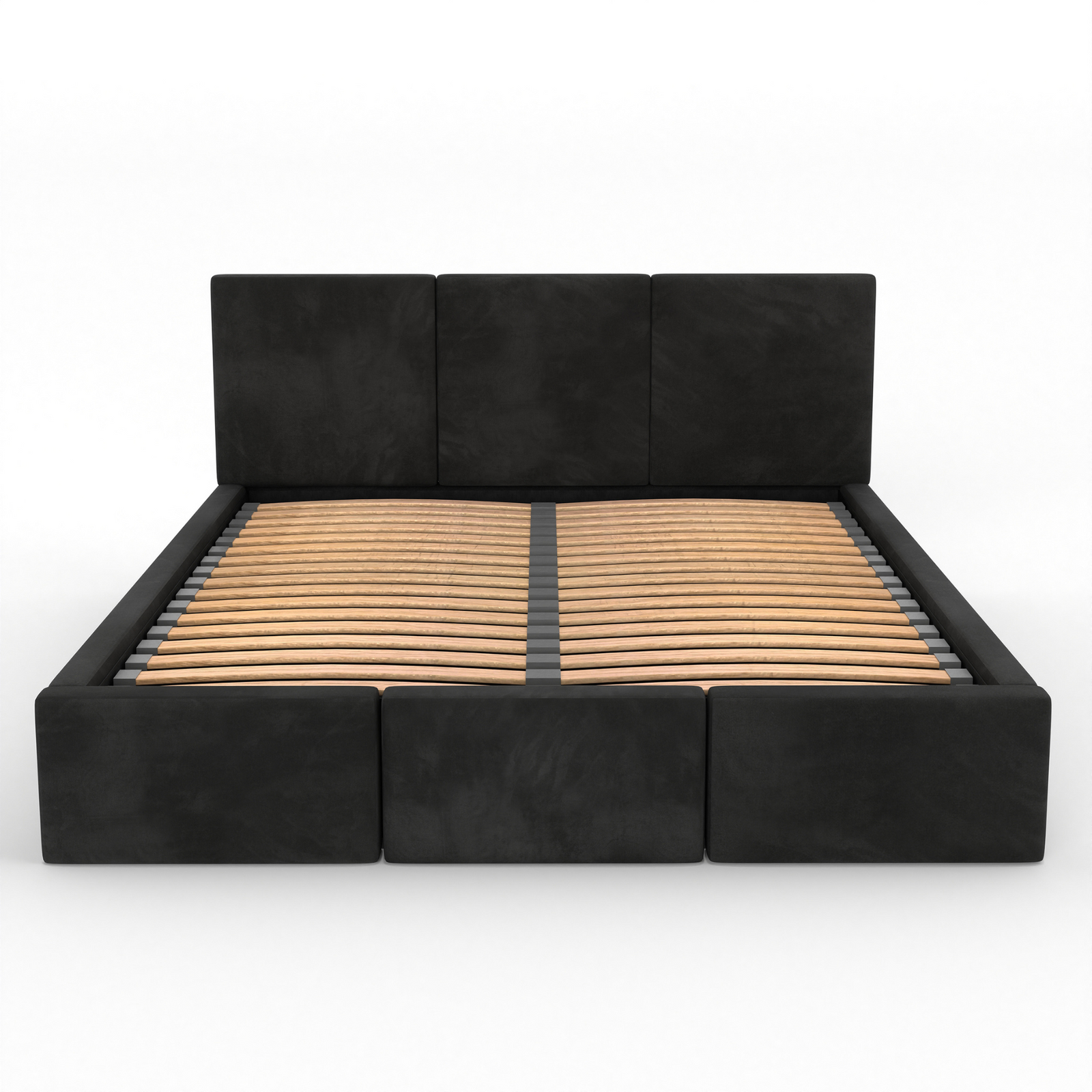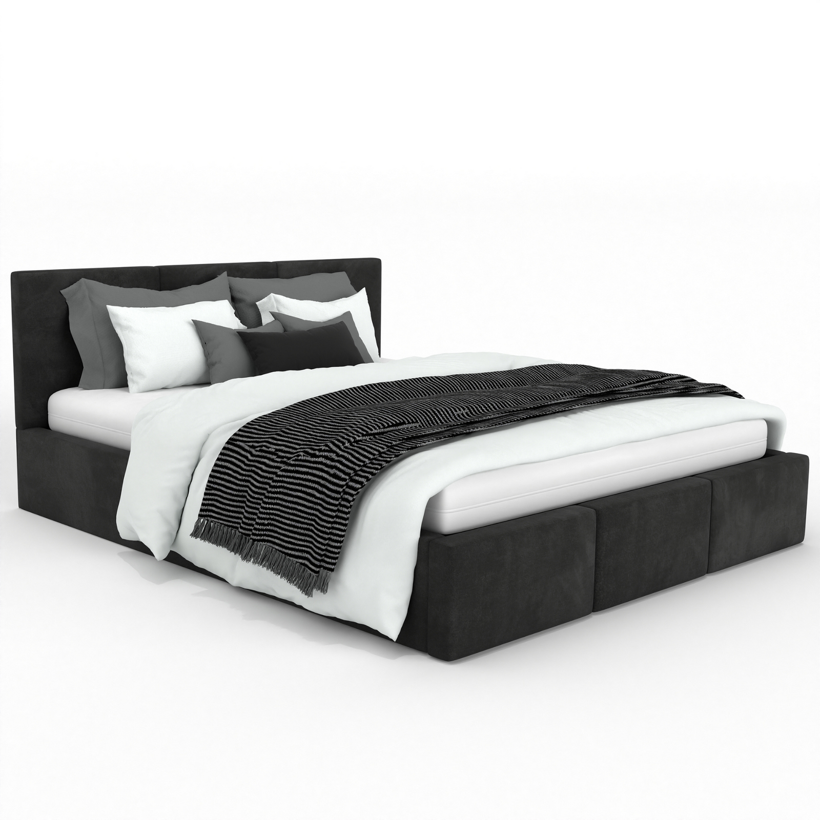 Łóżko podwójne tapicerowane VALENTINO 140x200 pojemnik na pościel - Czarny