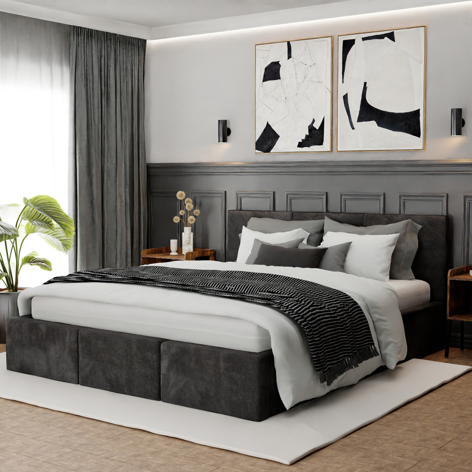 Łóżko VALENTINO to nie tylko komfortowy sen, ale także pewność, że wybierasz produkt stworzony z dbałością o każdy szczegół. Konstrukcja została wykonana z wytrzymałej płyty meblowej o odpowiedniej grubości, co przekłada się na wyjątkową stabilność i odporność na codzienne użytkowanie. To solidna podstawa, która zapewnia długowieczność mebla i wygodę przez wiele lat. Wszystkie krawędzie łóżka zostały starannie wykończone i zabezpieczone, co zwiększa bezpieczeństwo. Wybierając model VALENTINO, inwestujesz w niezawodność, estetykę i trwałość – cechy, które docenisz każdego dnia.
