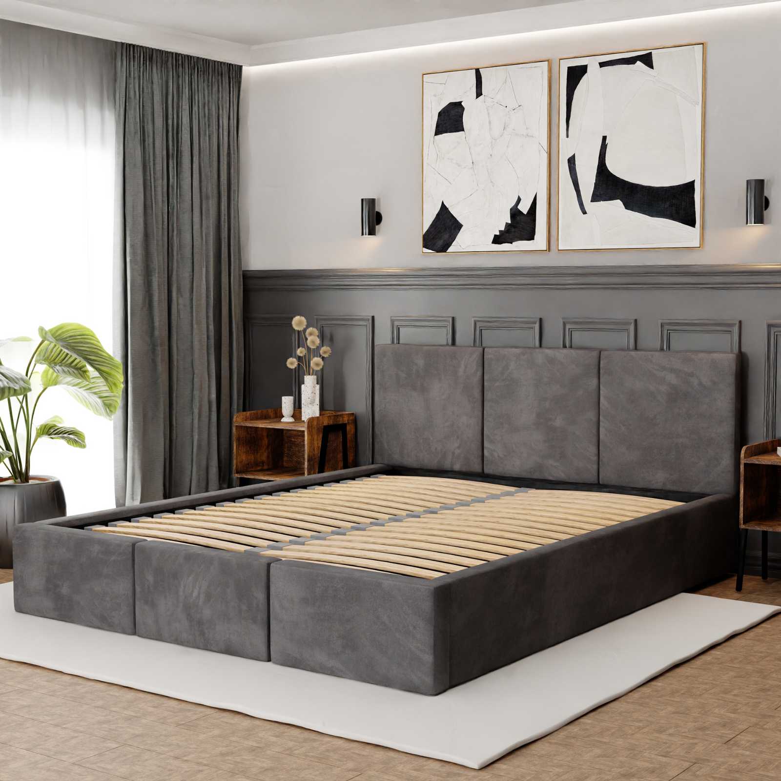 Łóżko podwójne tapicerowane VALENTINO 140x200 pojemnik na pościel - Grafitowy