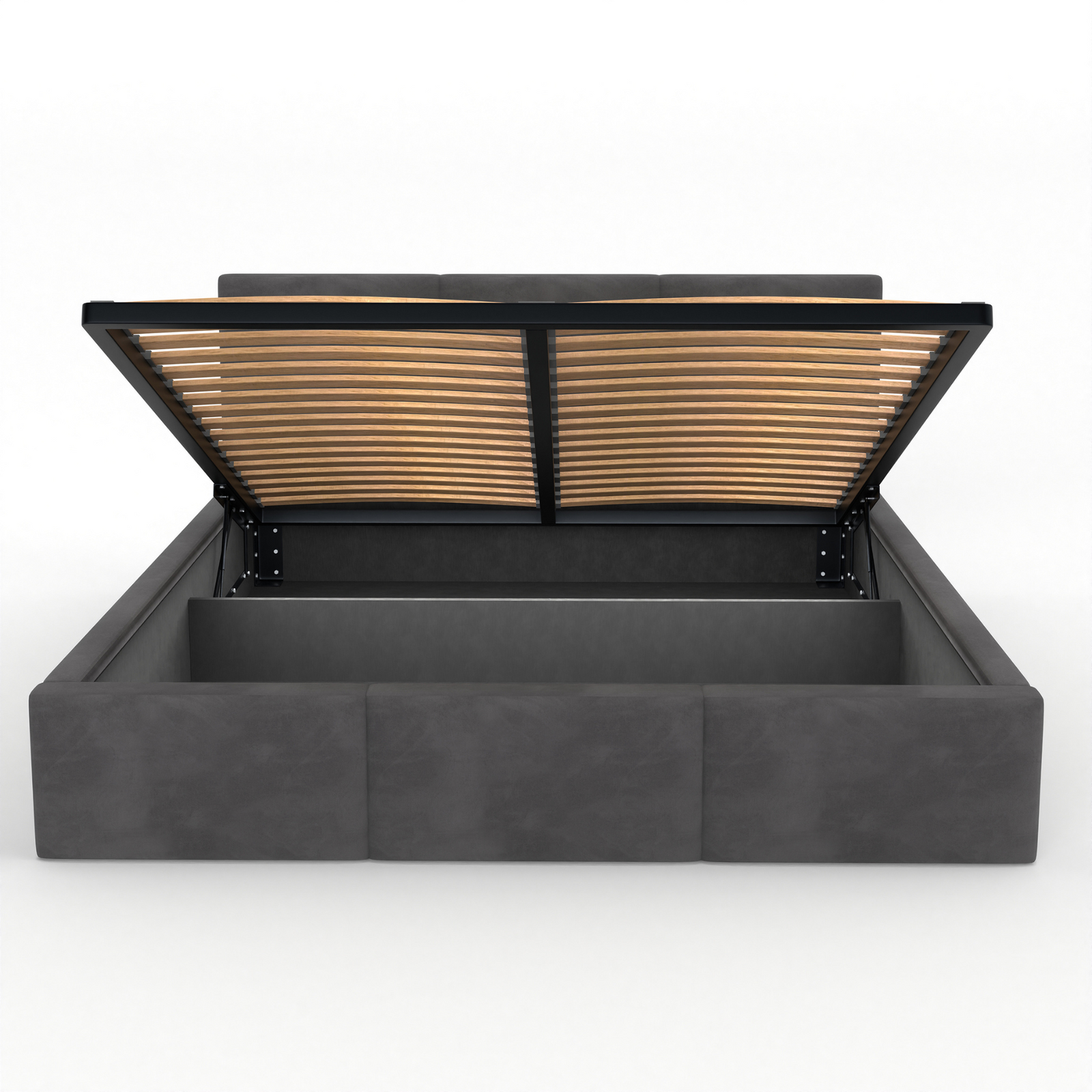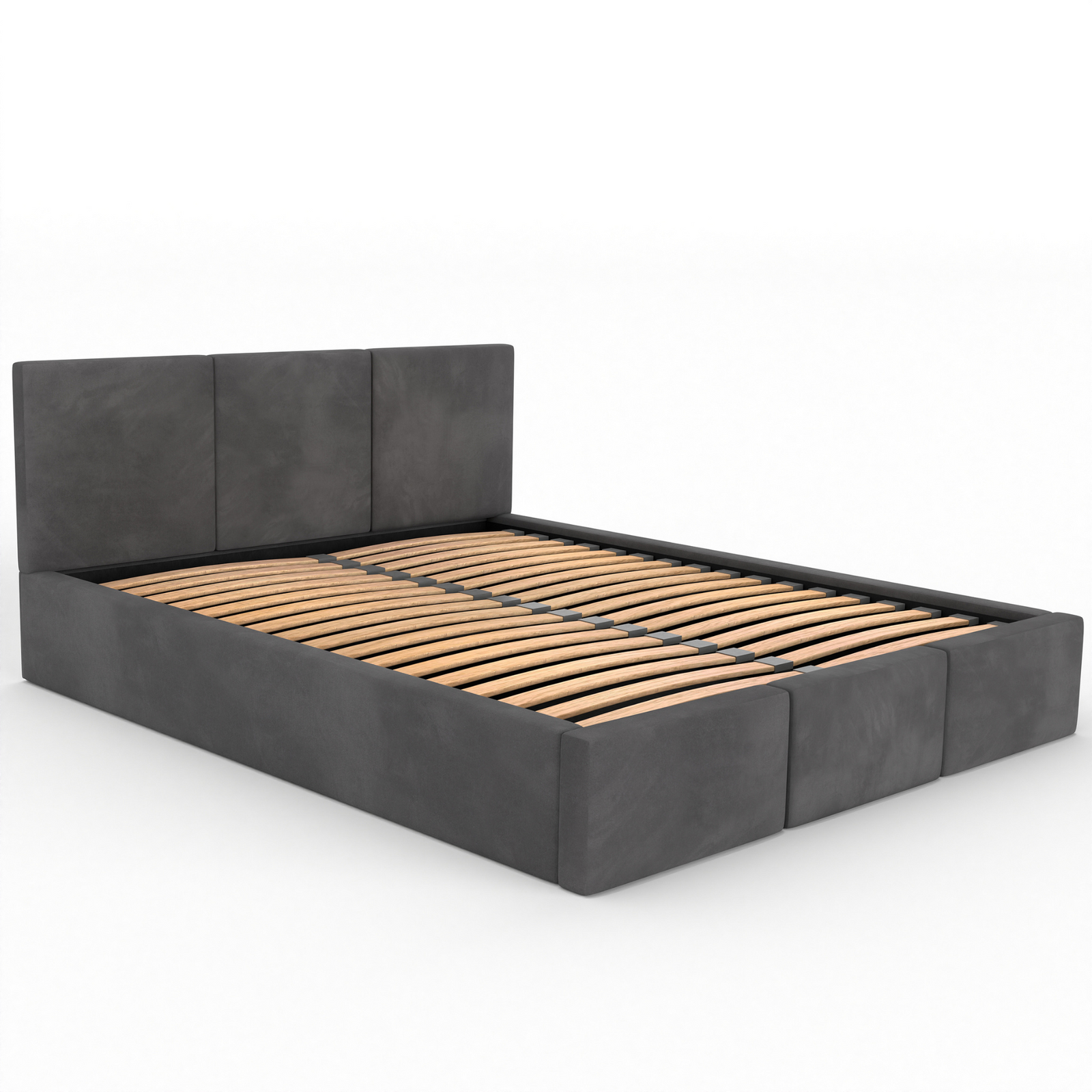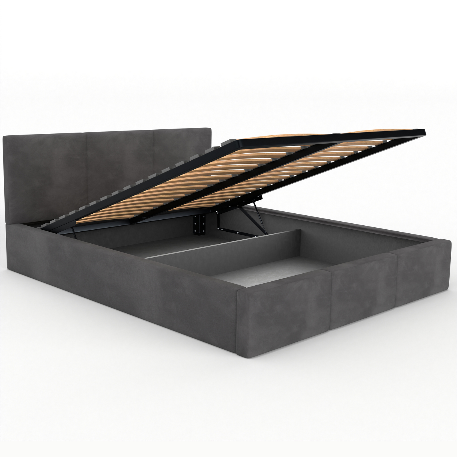 Łóżko podwójne tapicerowane VALENTINO 140x200 pojemnik na pościel - Grafitowy