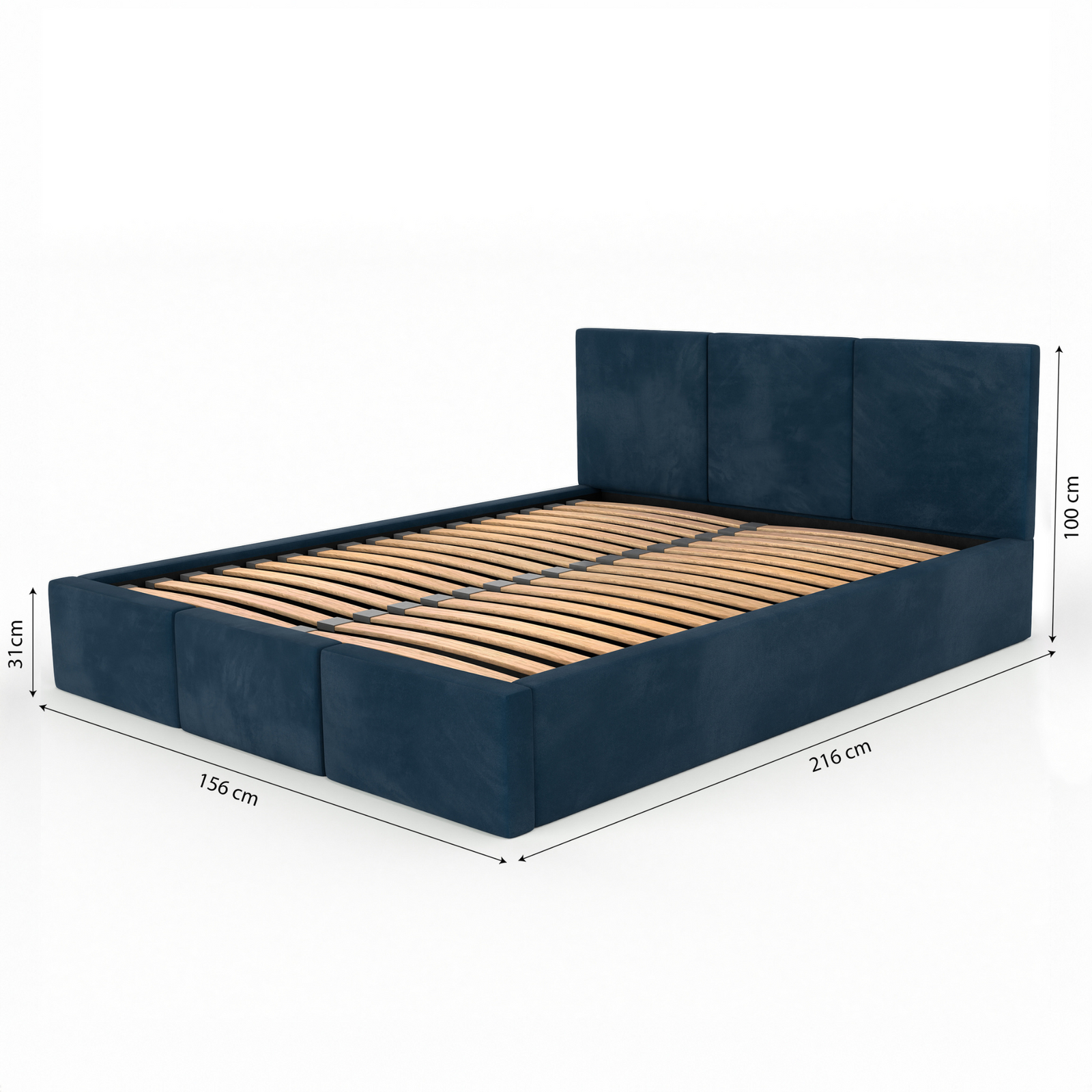 Łóżko podwójne tapicerowane VALENTINO 140x200 pojemnik na pościel - Granatowy