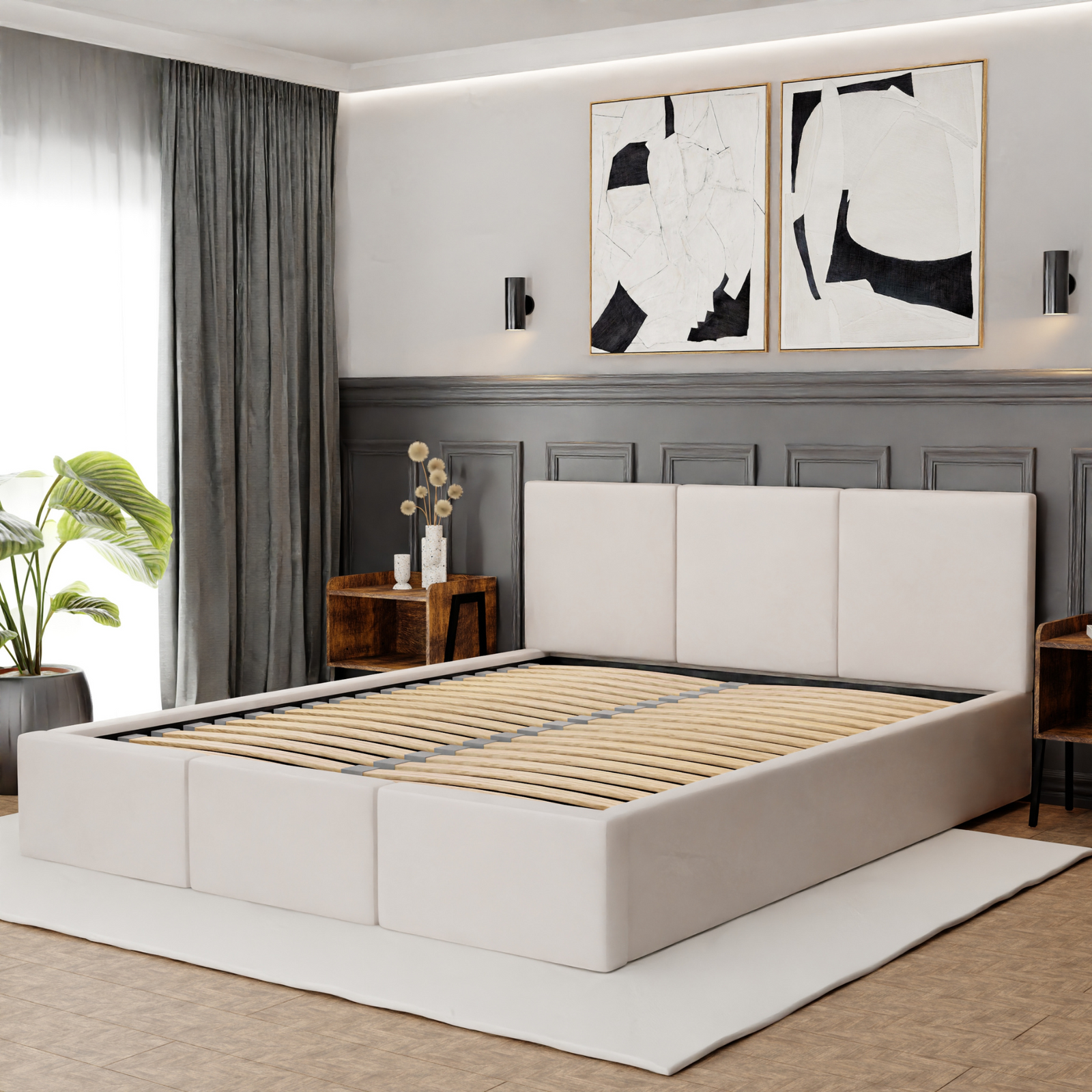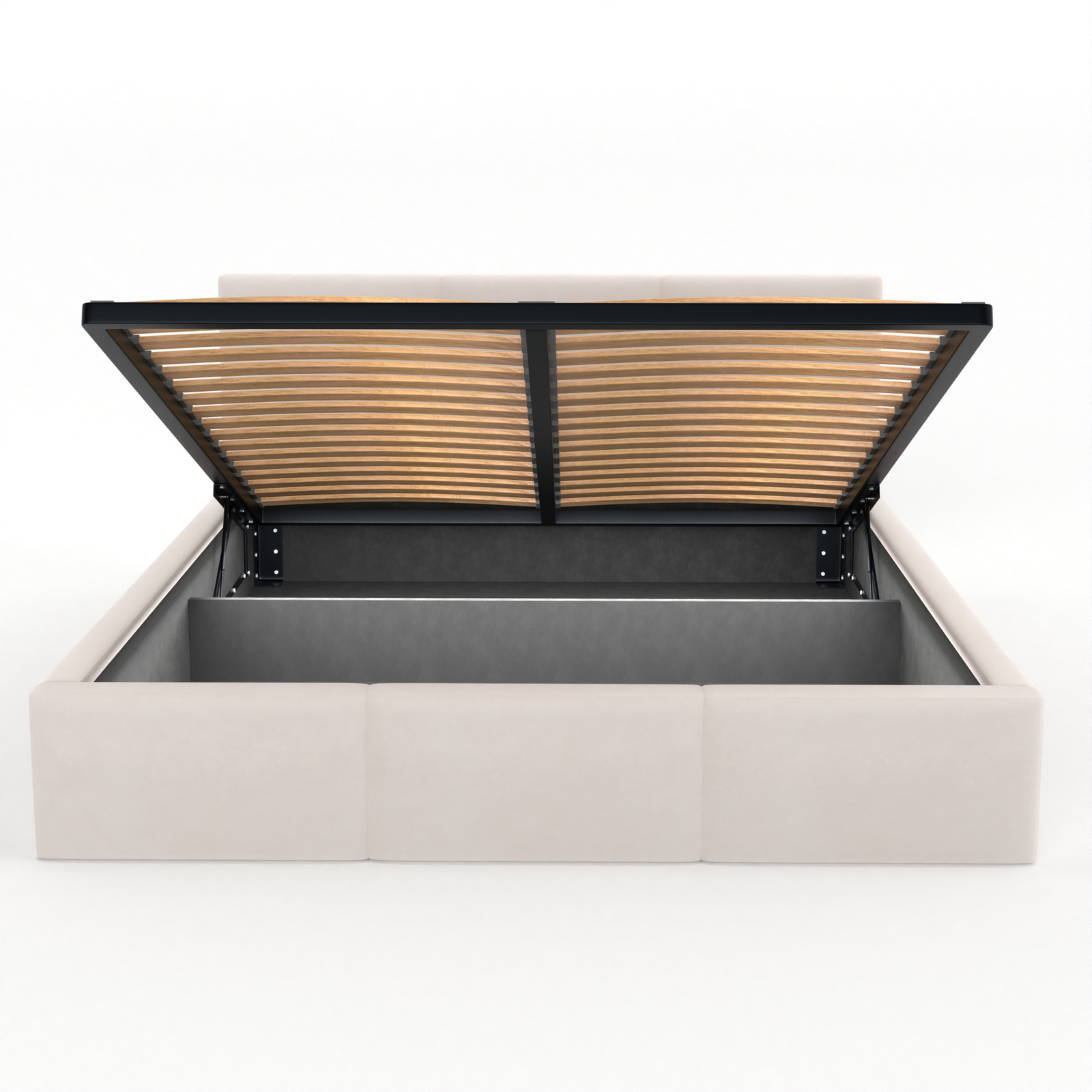 Łóżko podwójne tapicerowane VALENTINO 140x200 pojemnik na pościel - Kremowy
