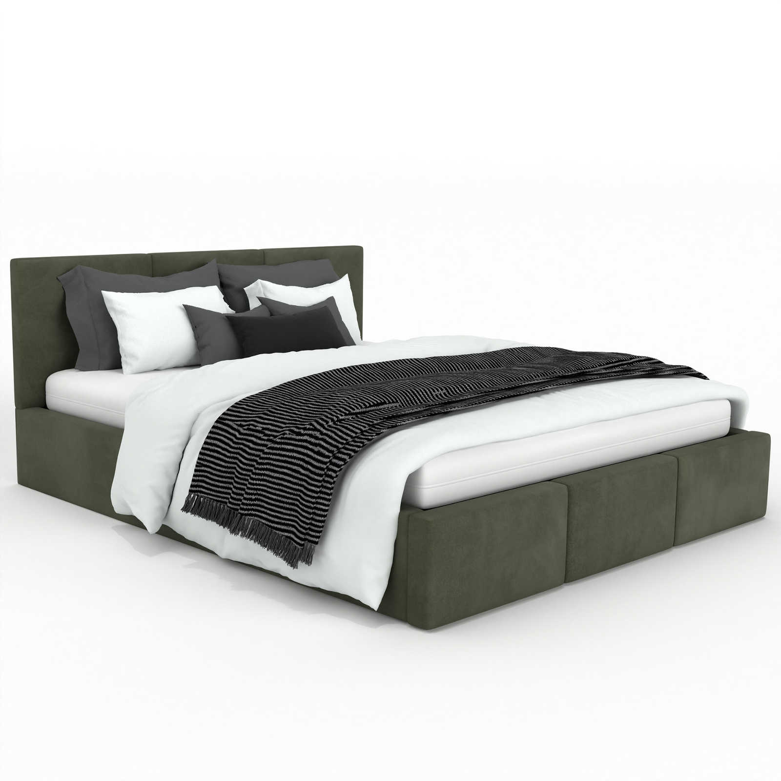 Łóżko podwójne tapicerowane VALENTINO 140x200 pojemnik na pościel - Oliwkowy