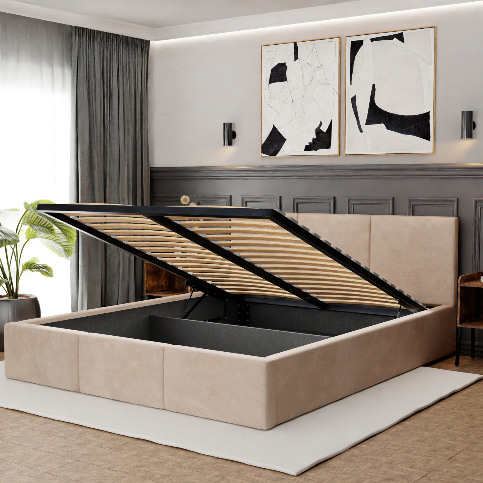 Pojemnik na pościel w łóżku VALENTINO to sprytne rozwiązanie dla porządku w sypialni, które zapewnia wygodę na co dzień. Dzięki dwóm wytrzymałym siłownikom gazowym rama ze stelażem unosi się lekko i bez wysiłku, gwarantując łatwy dostęp do dodatkowej przestrzeni ukrytej pod powierzchnią łóżka. Pojemny schowek to miejsce, w którym z łatwością przechowasz pościel, koce, poduszki i inne przedmioty. Pojemnik na pościel pomoże Ci utrzymać porządek i harmonię w Twojej sypialni. To na prawdę pojemny schowek w łóżku, który ułatwia życie, oferując praktyczną i funkcjonalną przestrzeń tam, gdzie jej najbardziej potrzebujesz. Z łóżkiem VALENTINO organizacja przestrzeni nigdy nie była tak prosta i komfortowa.