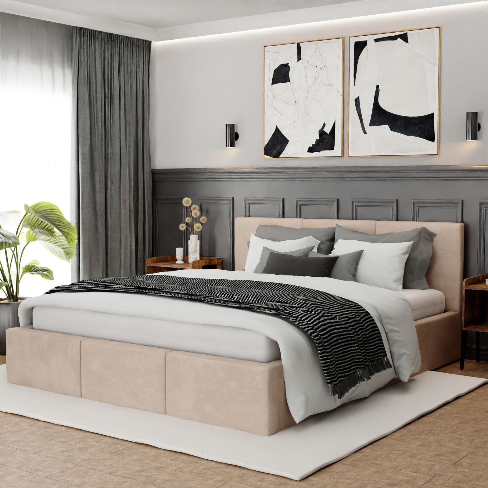 Podwójne tapicerowane łóżko VALENTINO to dobra inwestycja na długie lata. Model VALENTINO to nie tylko elegancki element wyposażenia, ale przede wszystkim przestrzeń, która zapewnia Ci maksymalny komfort, regenerację i codzienny relaks na najwyższym poziomie.