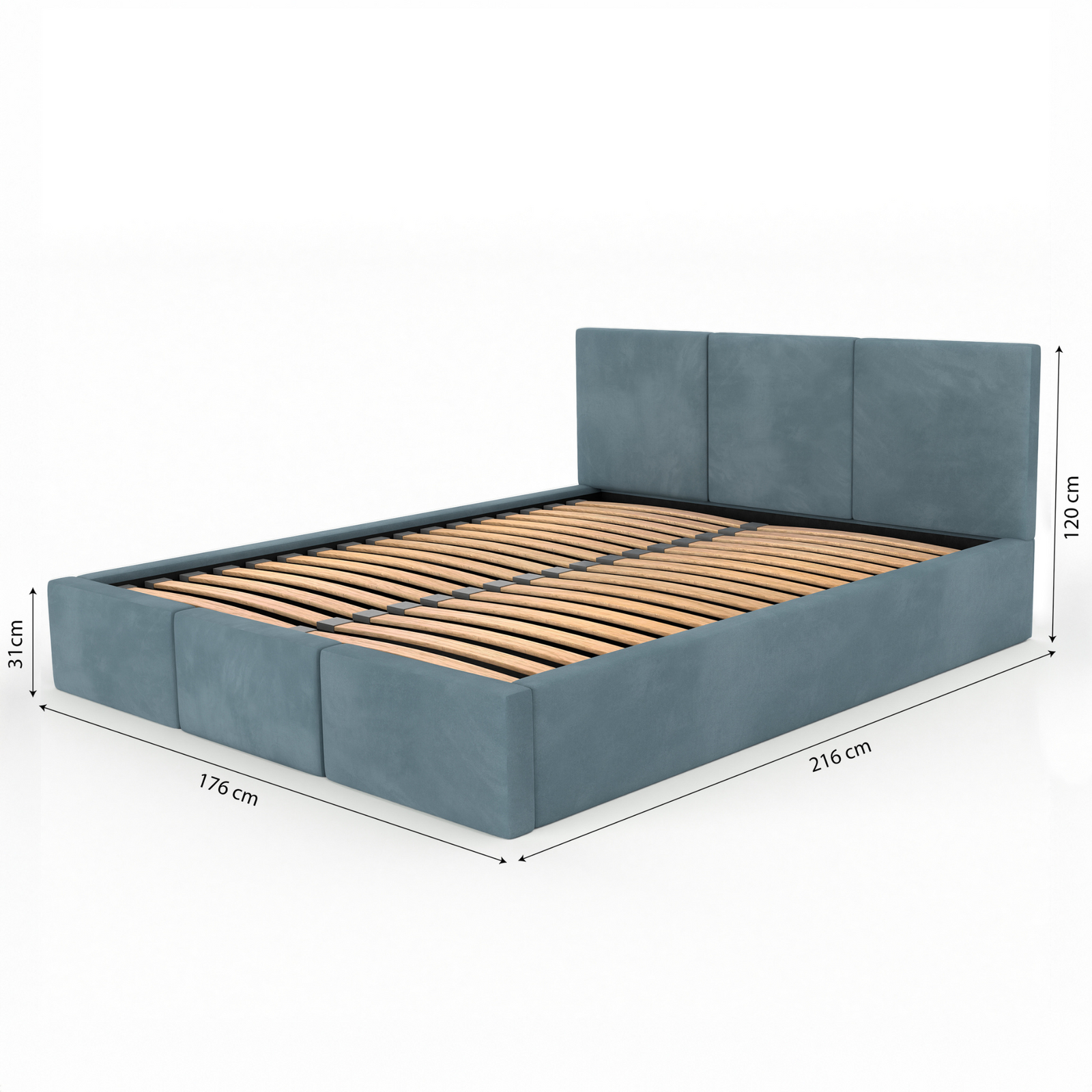 Łóżko podwójne tapicerowane VALENTINO 160x200 pojemnik na pościel - Błękitny