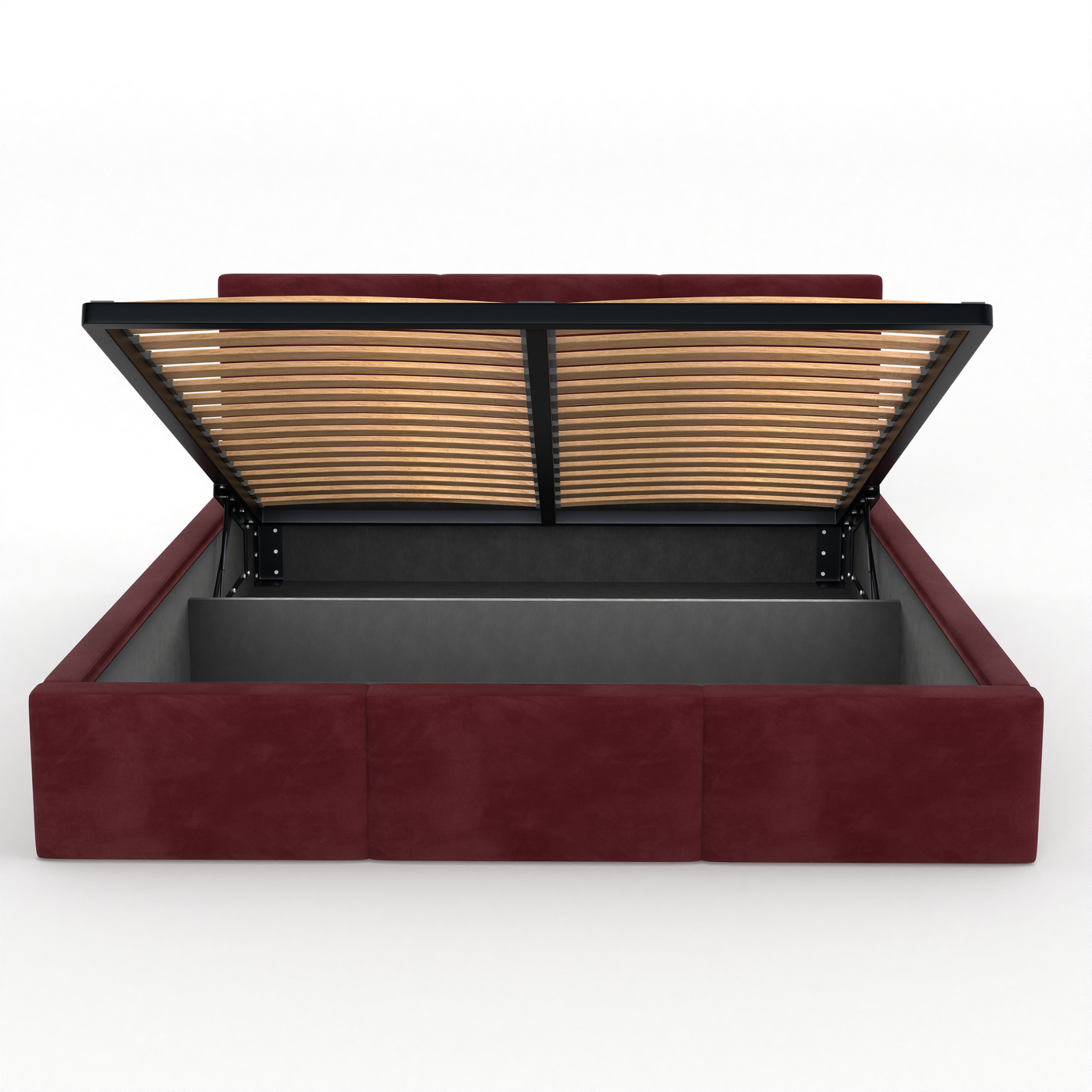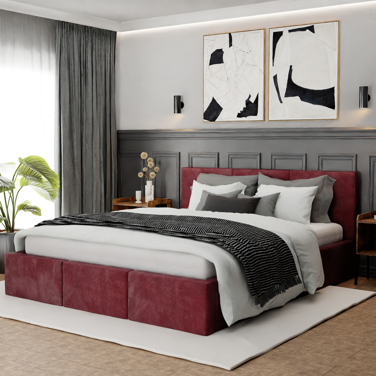 Łóżko podwójne tapicerowane VALENTINO 160x200 pojemnik na pościel - Bordowy