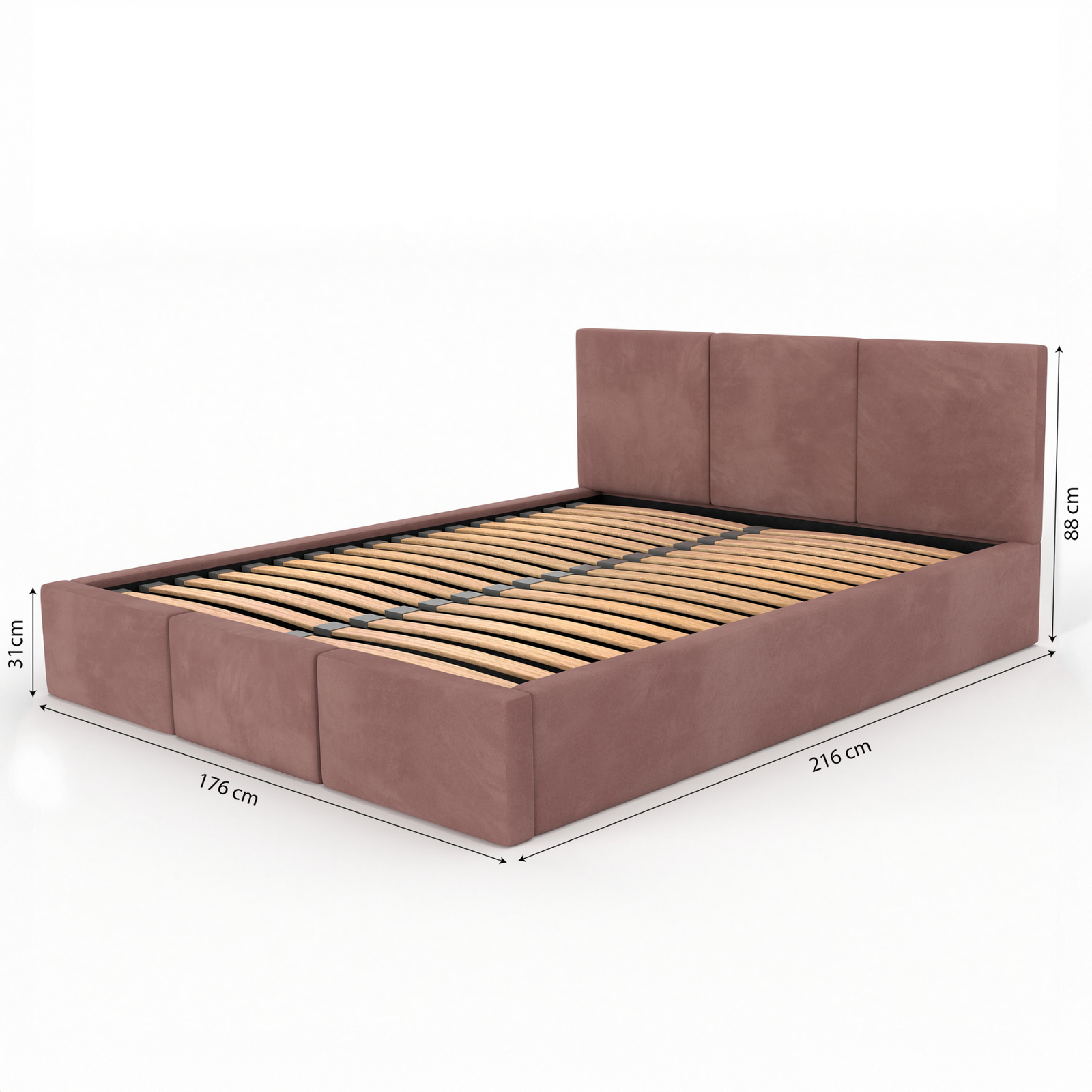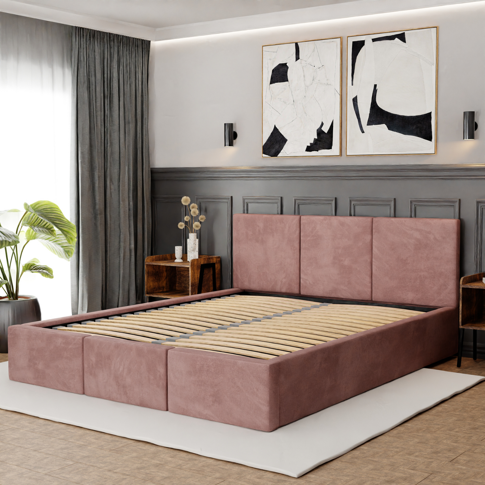 Łóżko podwójne tapicerowane VALENTINO 160x200 pojemnik na pościel - Brudny Róż