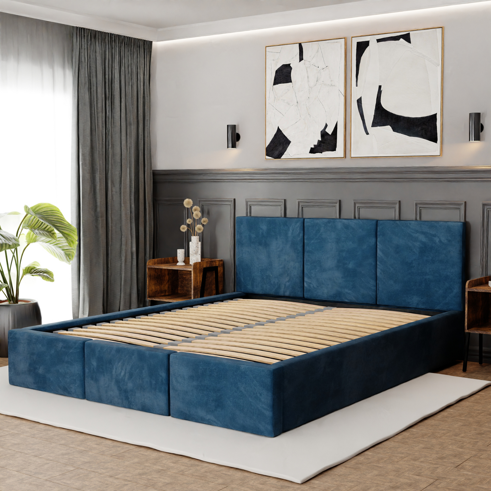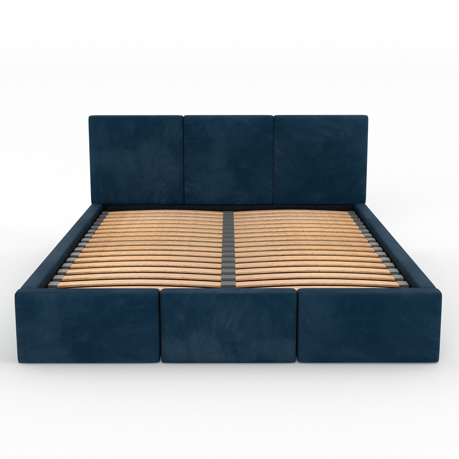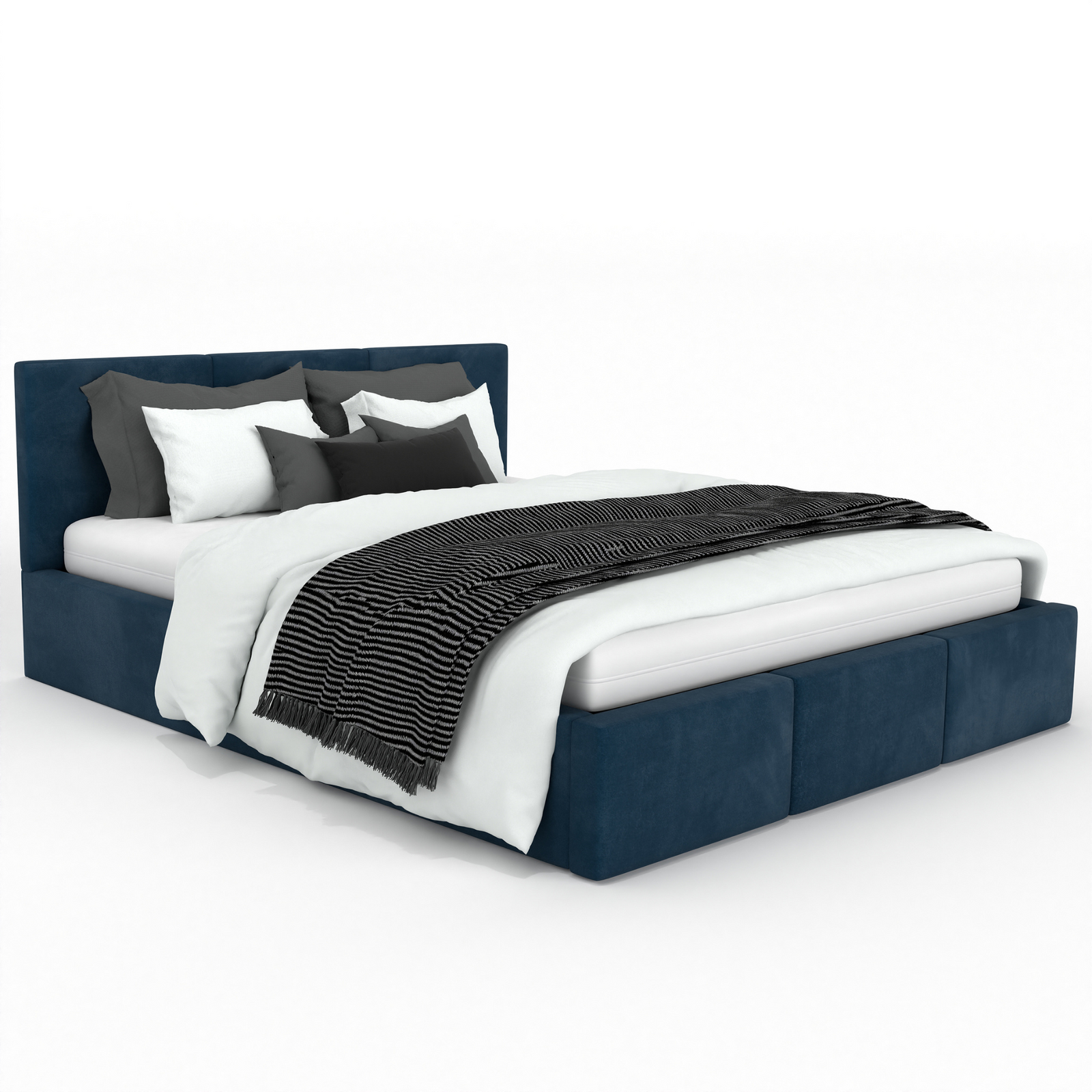 Łóżko podwójne tapicerowane VALENTINO 160x200 pojemnik na pościel - Granatowy
