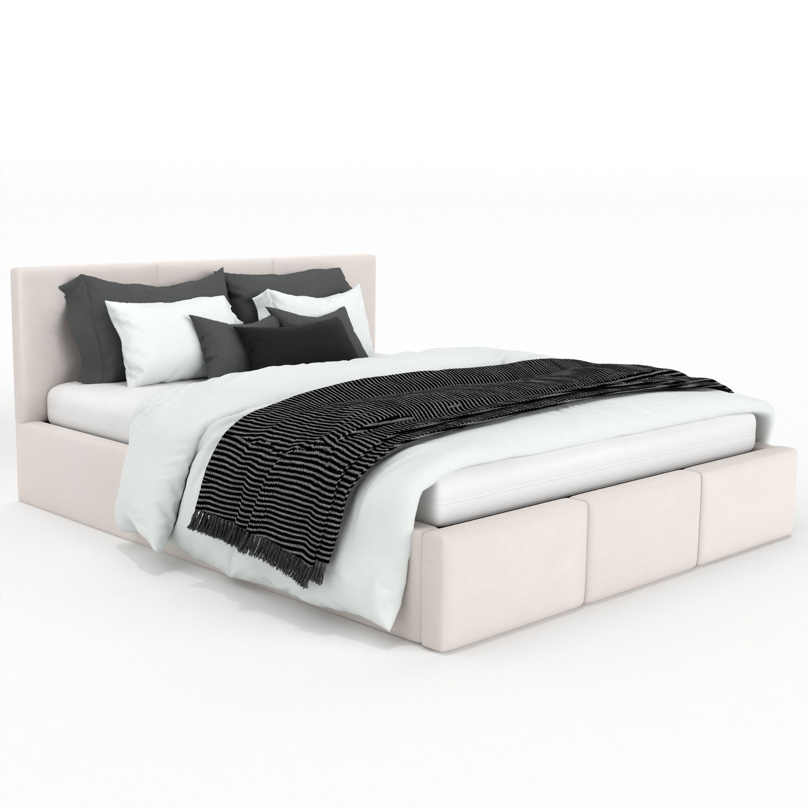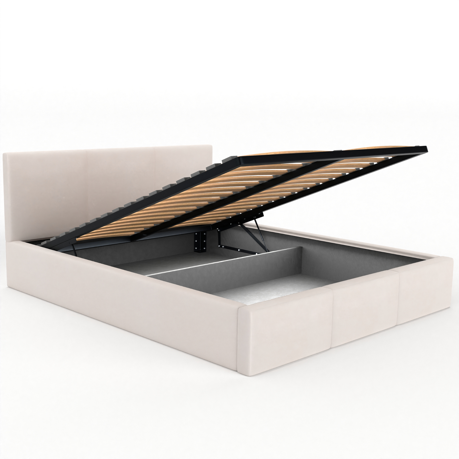 Pojemnik na pościel w łóżku VALENTINO to sprytne rozwiązanie dla porządku w sypialni, które zapewnia wygodę na co dzień. Dzięki dwóm wytrzymałym siłownikom gazowym rama ze stelażem unosi się lekko i bez wysiłku, gwarantując łatwy dostęp do dodatkowej przestrzeni ukrytej pod powierzchnią łóżka. Pojemny schowek to miejsce, w którym z łatwością przechowasz pościel, koce, poduszki i inne przedmioty. Pojemnik na pościel pomoże Ci utrzymać porządek i harmonię w Twojej sypialni. To na prawdę pojemny schowek w łóżku, który ułatwia życie, oferując praktyczną i funkcjonalną przestrzeń tam, gdzie jej najbardziej potrzebujesz. Z łóżkiem VALENTINO organizacja przestrzeni nigdy nie była tak prosta i komfortowa.