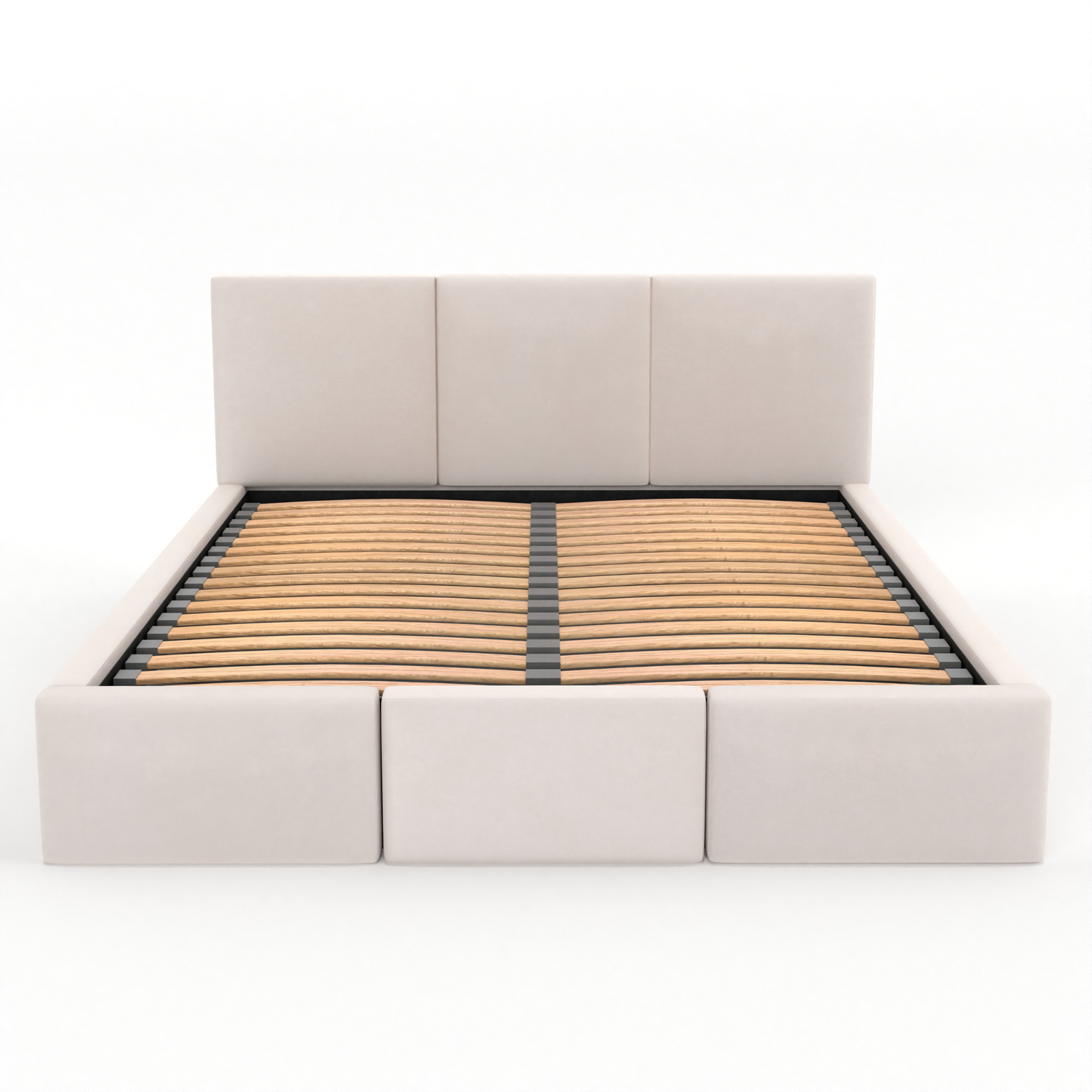 Sercem łóżka VALENTINO jest solidny stelaż wsparty na trwałej, metalowej ramie z centralnym wzmocnieniem, która gwarantuje niezawodność i odporność na obciążenia przez wiele lat. Stelaż składa się z elastycznych listew brzozowych, sprężynujących w systemie FLEX i umieszczonych w wytrzymałych, plastikowych kieszonkach. Taka technologia pozwala wyeliminować skrzypienie, zapewniając cichy i spokojny sen każdej nocy. Dzięki odpowiedniemu rozmieszczeniu listew, materac zyskuje stabilne, a zarazem elastyczne podparcie oraz optymalną cyrkulację powietrza, co wpływa zarówno na komfort użytkowania, jak i dłuższą żywotność samego materaca. *BRAK MATERACA W ZESTAWIE!