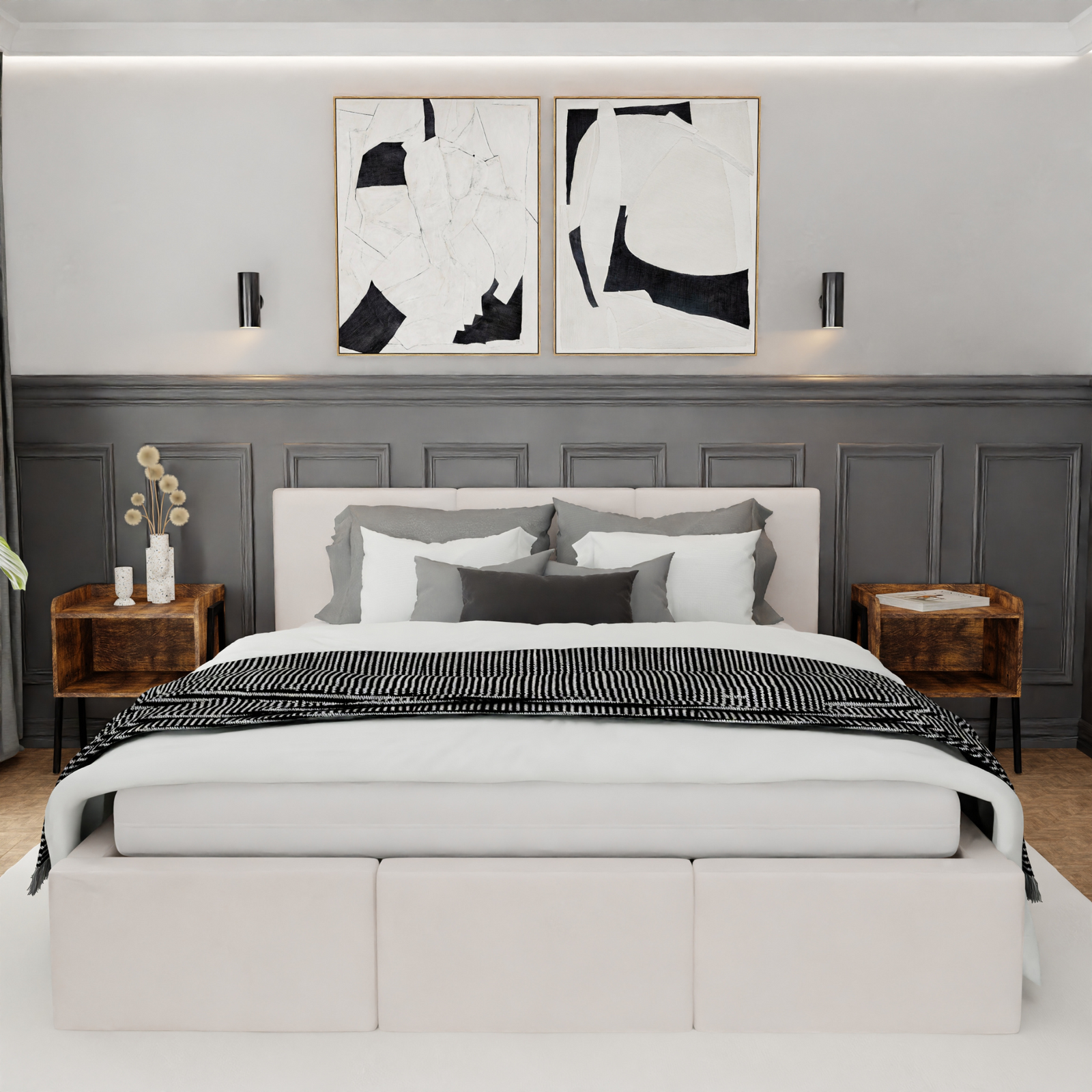 Łóżko VALENTINO to nie tylko komfortowy sen, ale także pewność, że wybierasz produkt stworzony z dbałością o każdy szczegół. Konstrukcja została wykonana z wytrzymałej płyty meblowej o odpowiedniej grubości, co przekłada się na wyjątkową stabilność i odporność na codzienne użytkowanie. To solidna podstawa, która zapewnia długowieczność mebla i wygodę przez wiele lat. Wszystkie krawędzie łóżka zostały starannie wykończone i zabezpieczone, co zwiększa bezpieczeństwo. Wybierając model VALENTINO, inwestujesz w niezawodność, estetykę i trwałość – cechy, które docenisz każdego dnia.