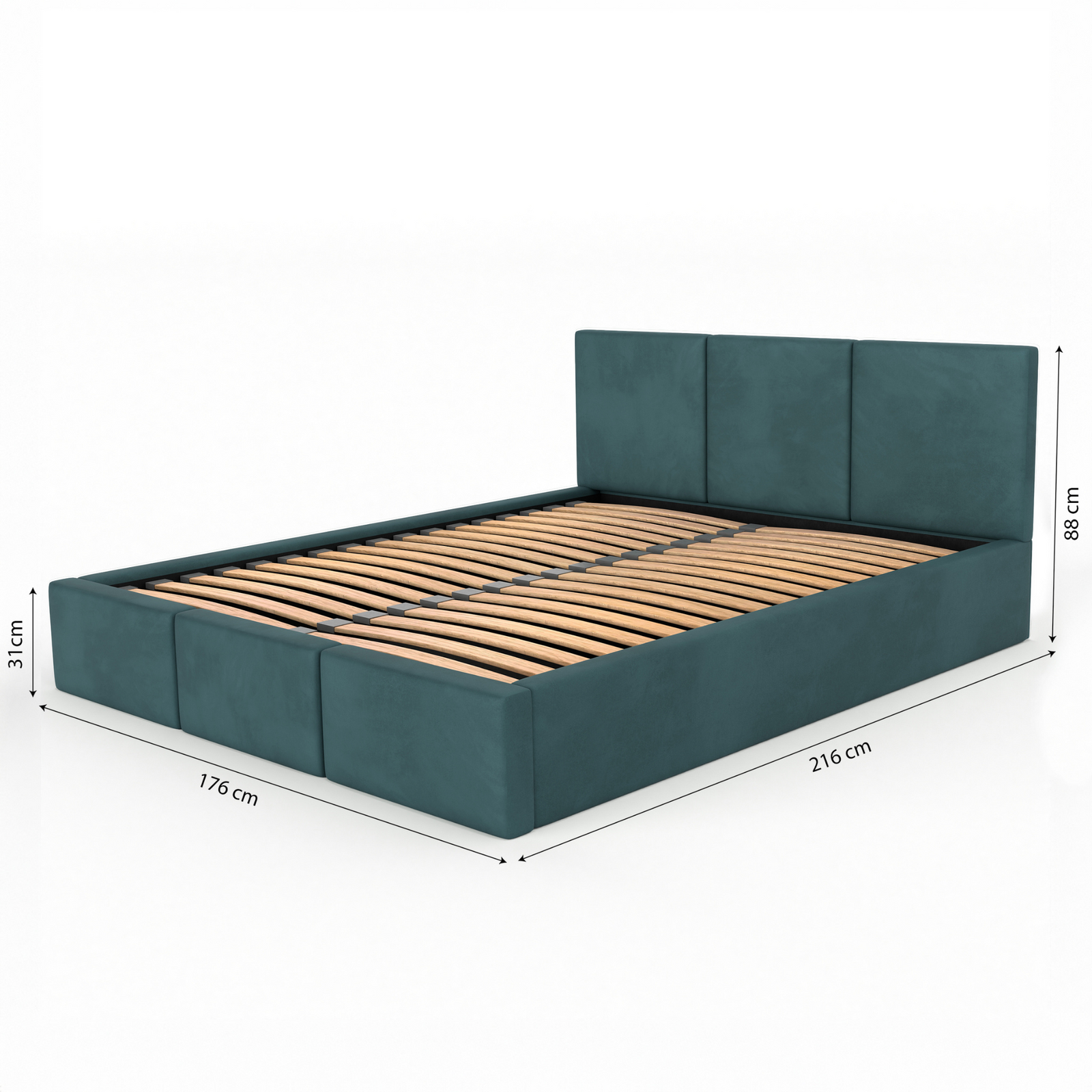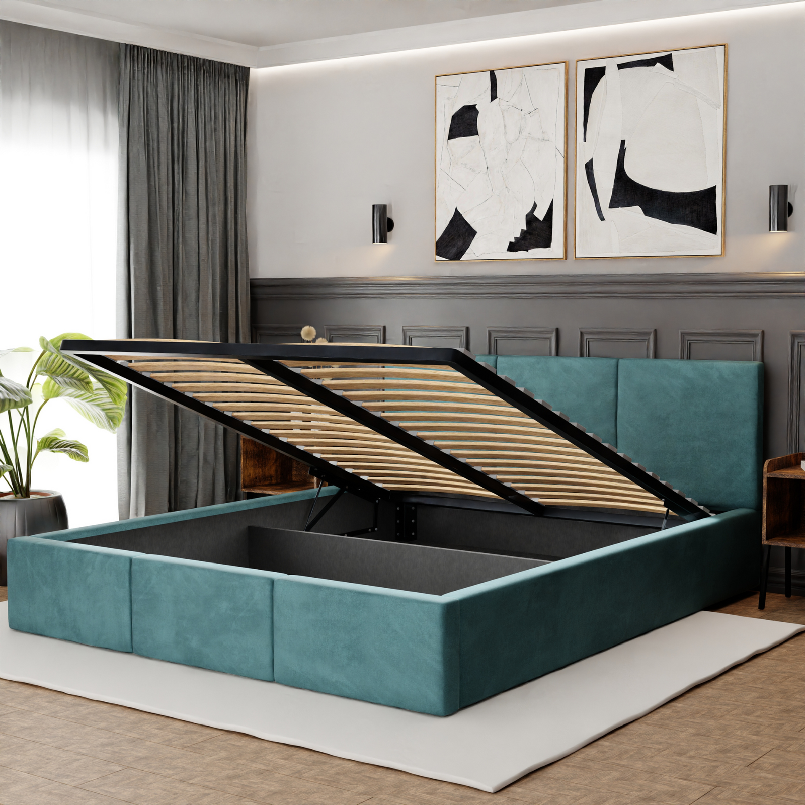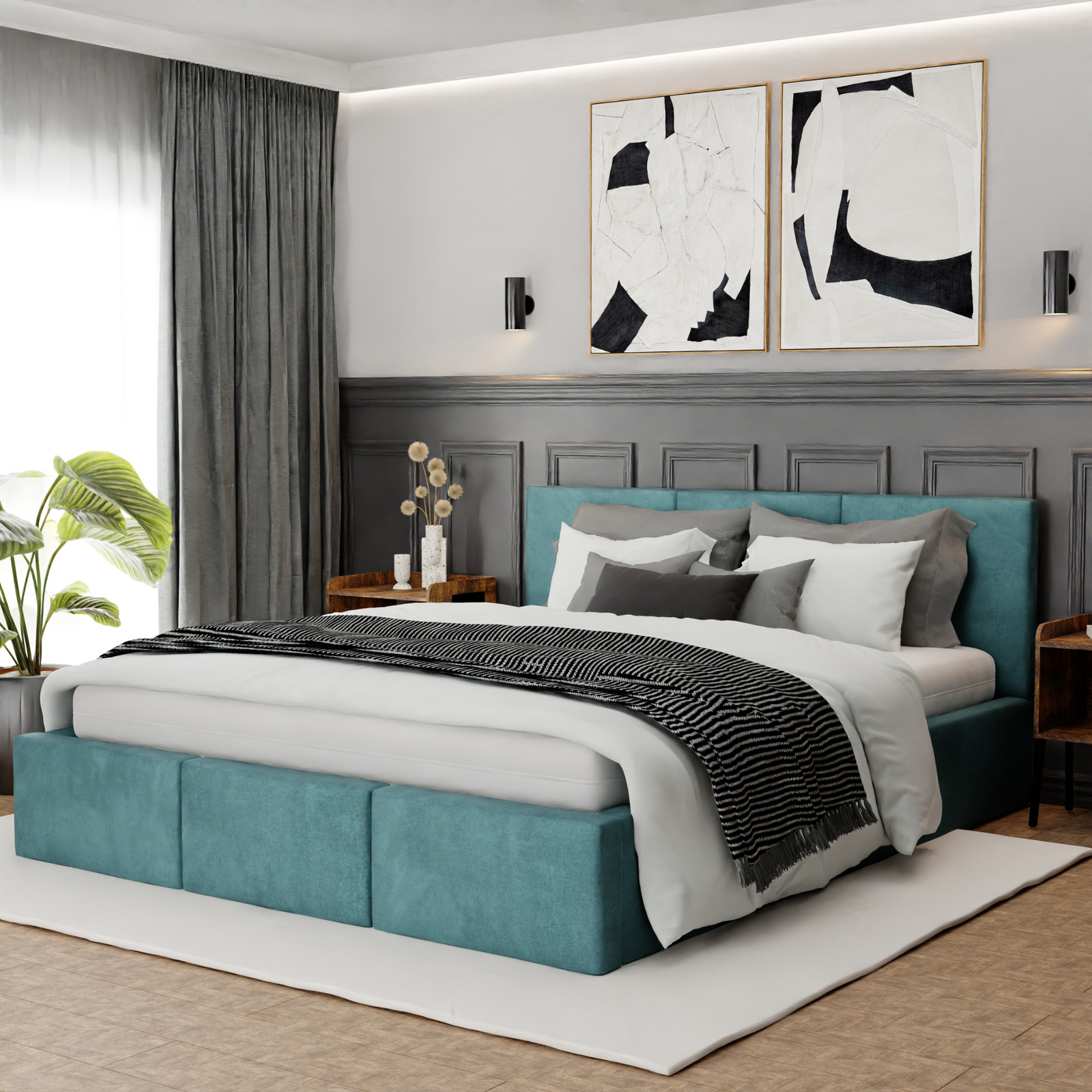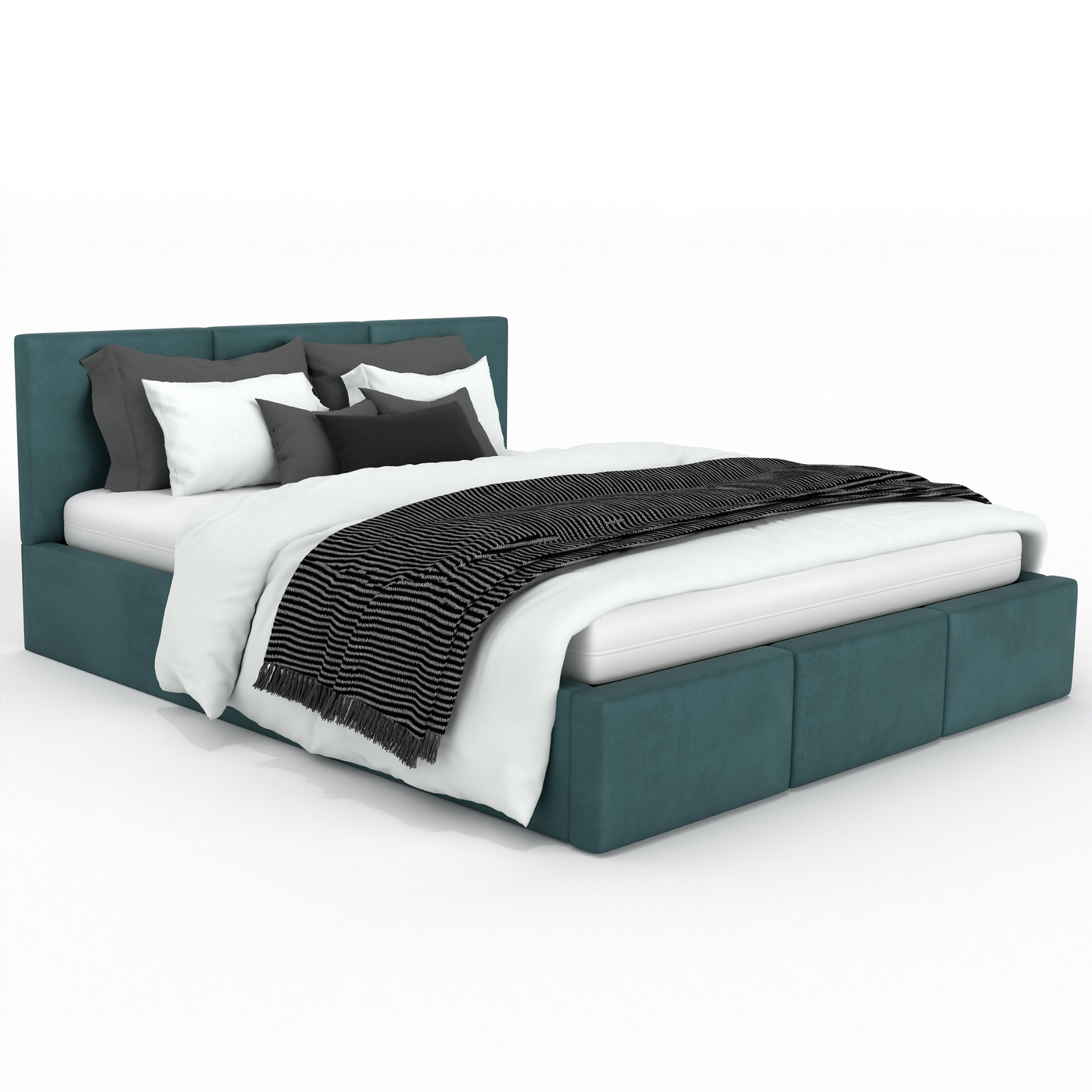 Łóżko podwójne tapicerowane VALENTINO 160x200 pojemnik na pościel - Turkusowy