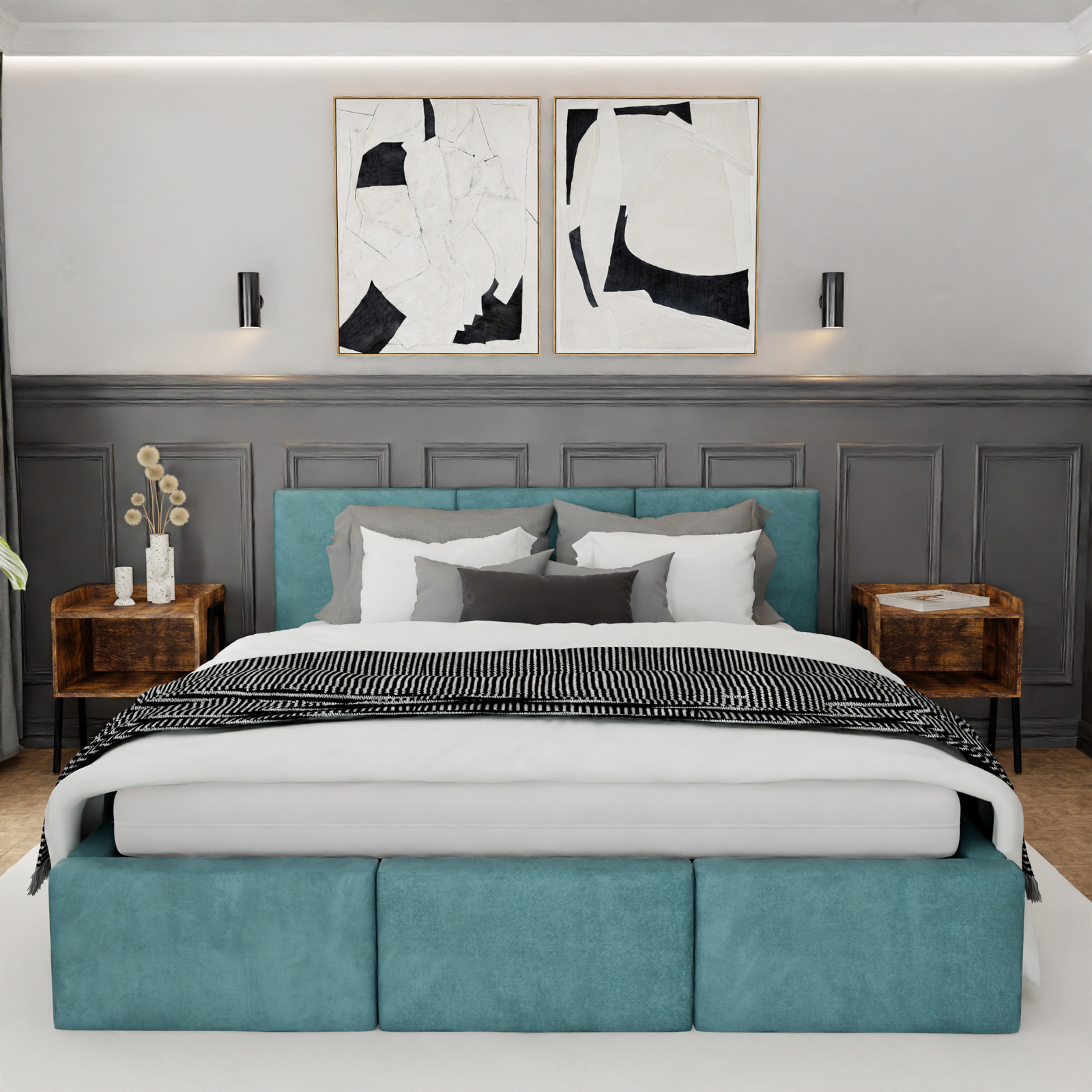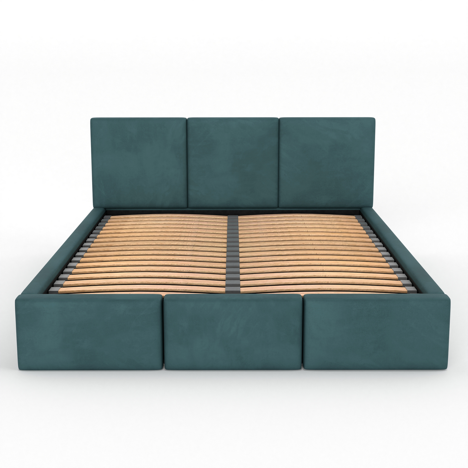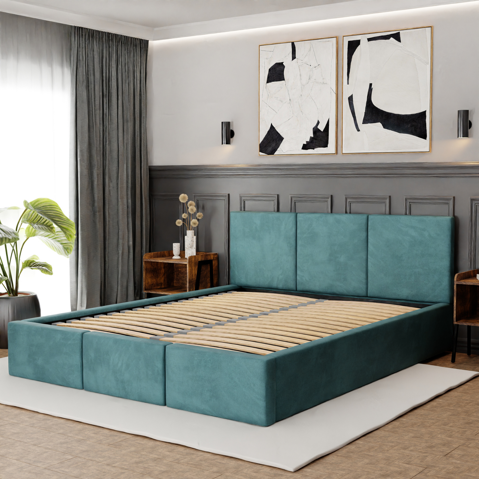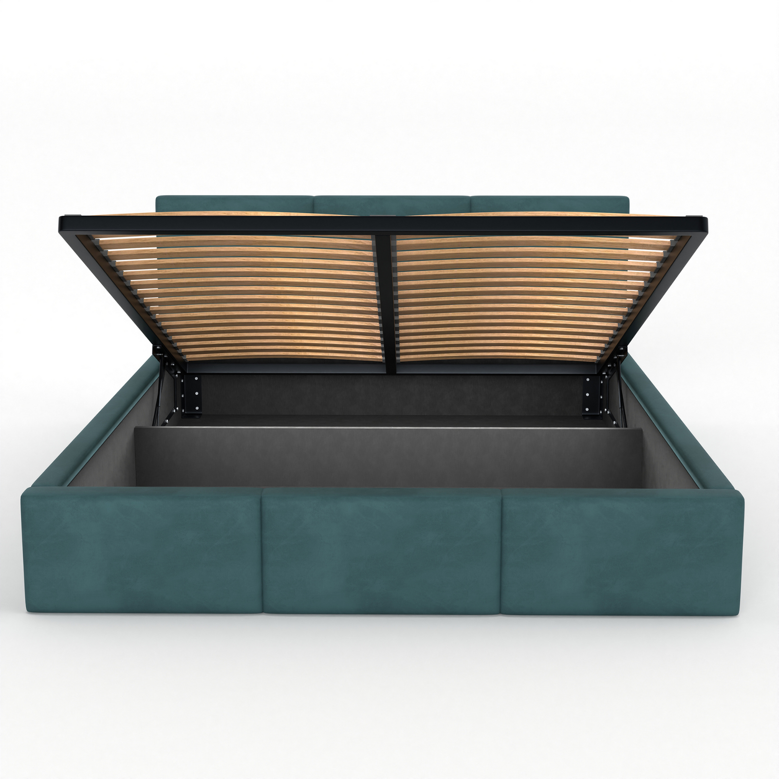 Łóżko podwójne tapicerowane VALENTINO 160x200 pojemnik na pościel - Turkusowy