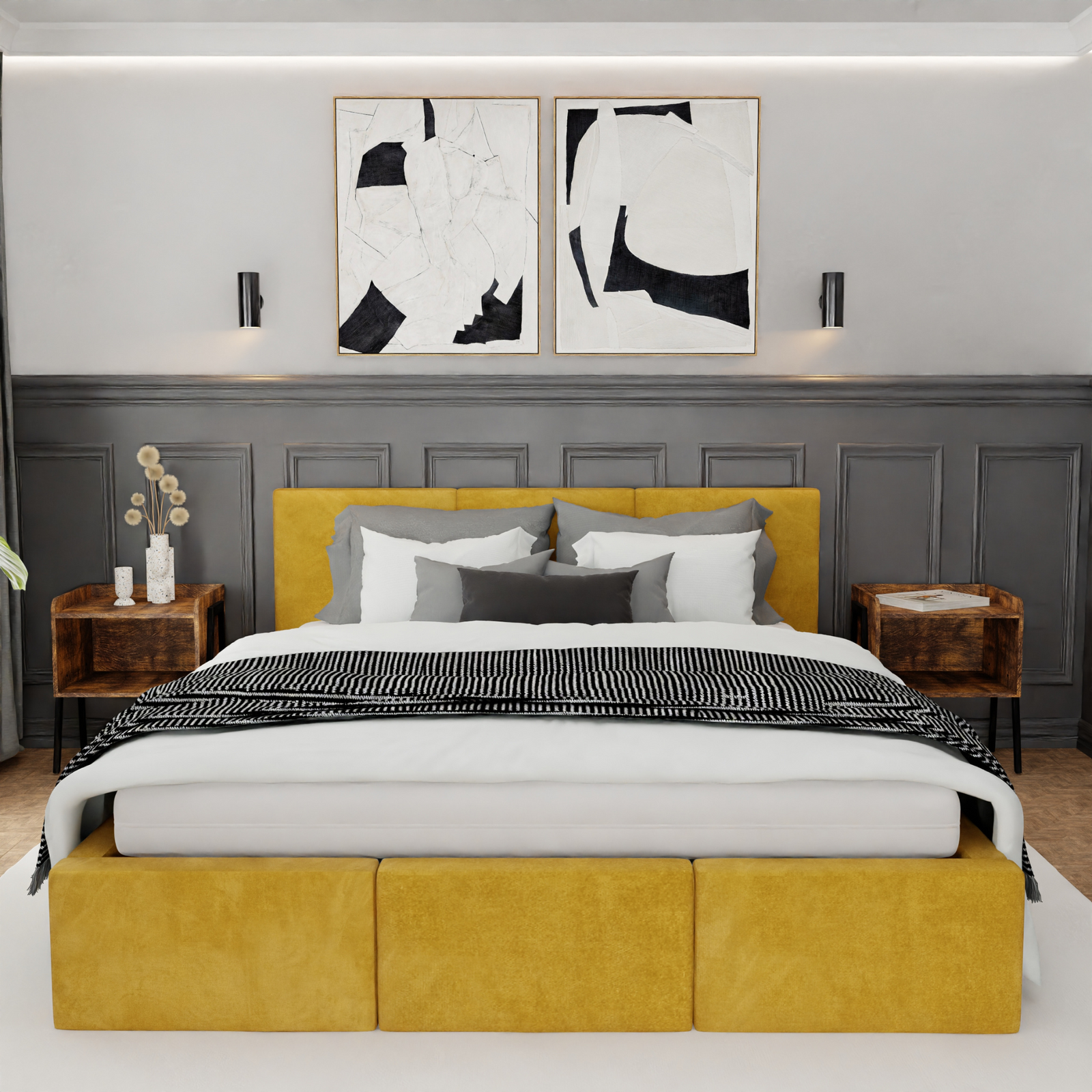 Łóżko podwójne tapicerowane VALENTINO 160x200 pojemnik na pościel - Żółty