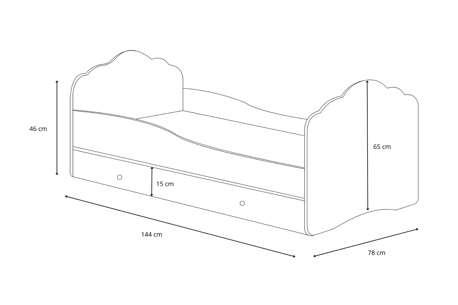 • • Łóżko: 144 cm x 78 cm x 65 cm
