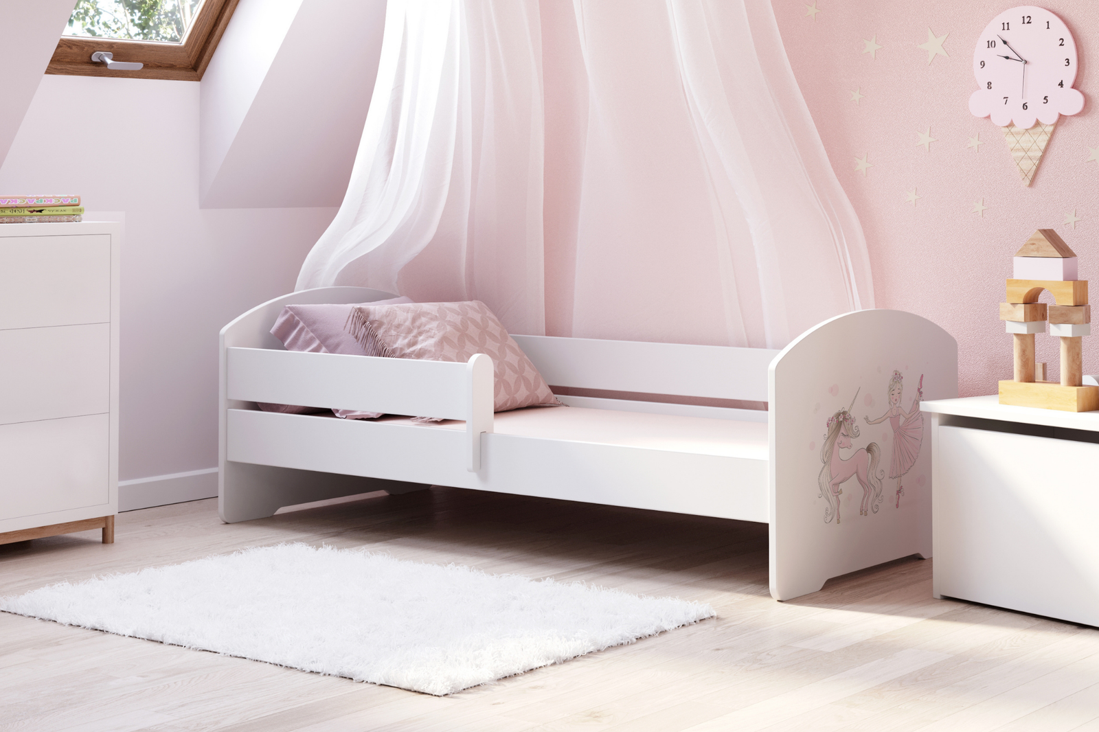 Łóżko pojedyncze LUK 140x70 z barierką - Dziewczynka z jednorożcem