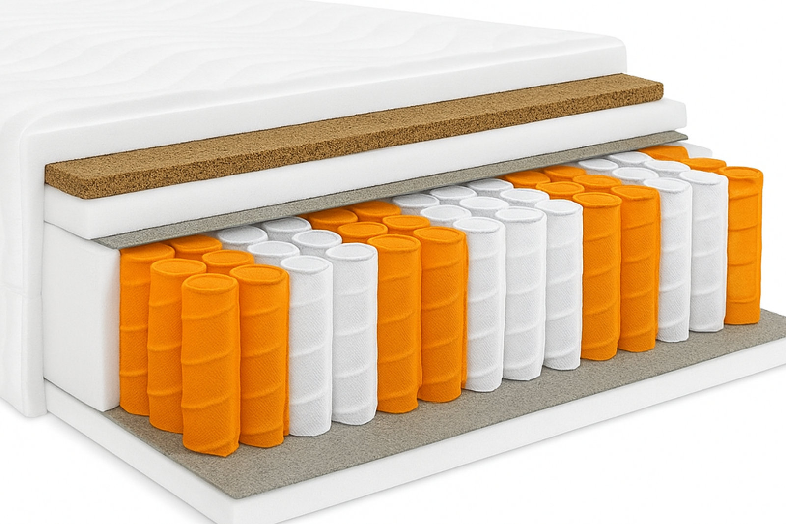 Sercem materaca są niezależne sprężyny kieszeniowe, które działają punktowo, dopasowując się do naturalnych krzywizn ciała. Dzięki gęstości około 260 szt./m² materac reaguje precyzyjnie na nacisk i tłumi ruchy partnera, gwarantując spokojny, niezakłócony sen oraz właściwe ułożenie kręgosłupa.