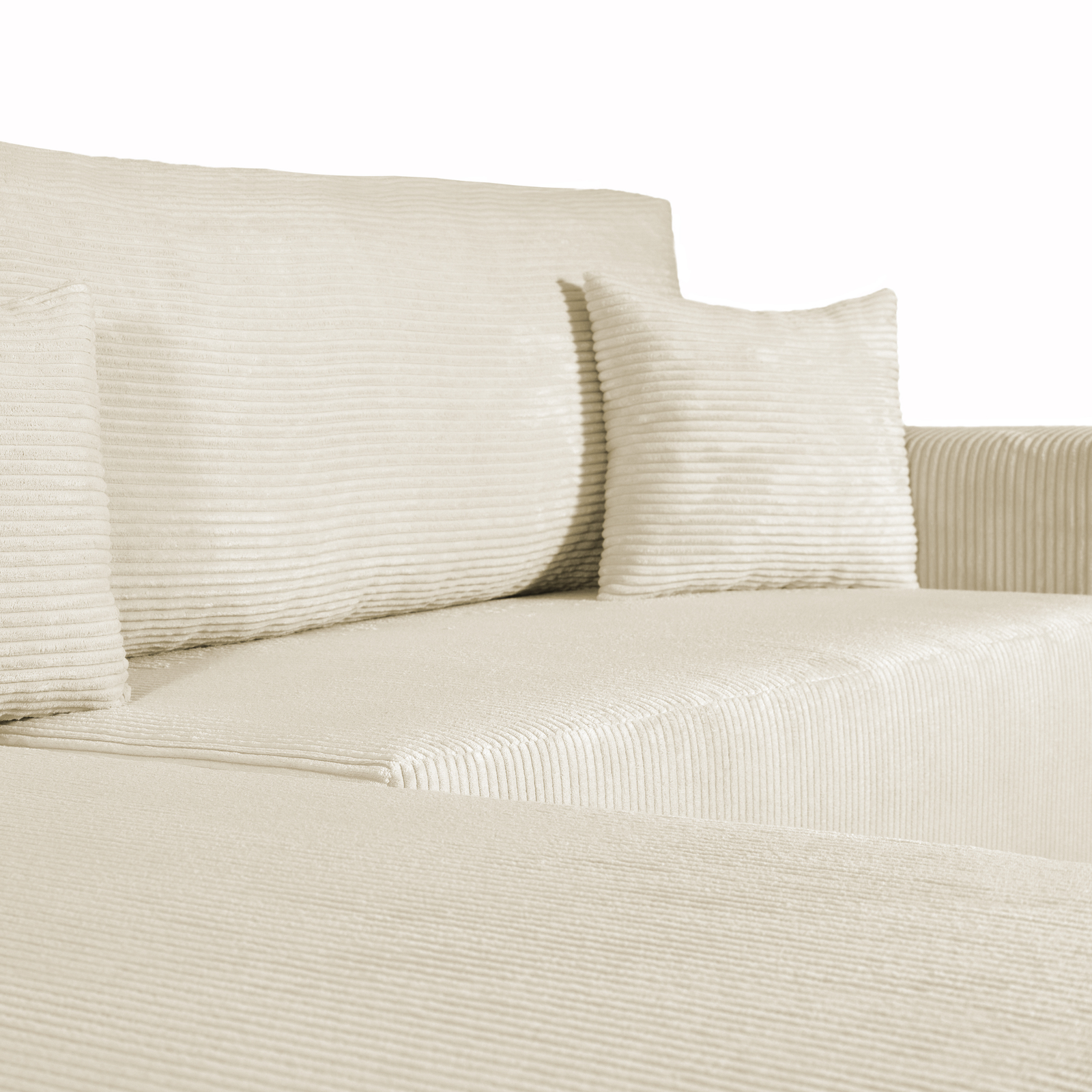Tak — tył narożnika jest obity tkaniną, dzięki czemu prezentuje się estetycznie z każdej strony. - Czy narożnik posiada pojemnik na pościel?