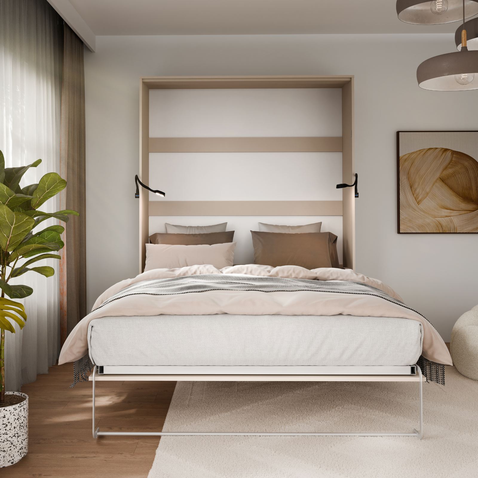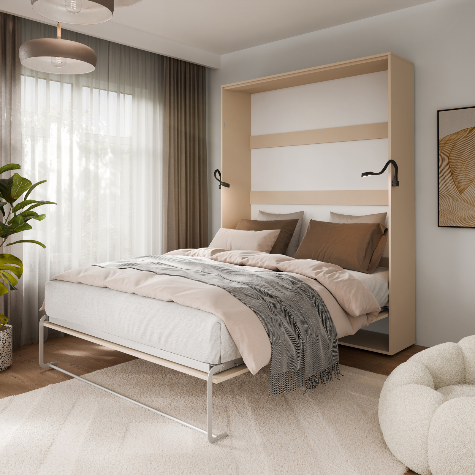Żyj tak, jak lubisz – bez względu na metraż. Marzysz o wygodnym łóżku, ale brakuje Ci miejsca? Zastanawiasz się, czy postawić na komfort snu, czy większą przestrzeń do życia? Już nie musisz wybierać! W kilka chwil możesz stworzyć przytulną sypialnię tam, gdzie wcześniej przestrzeń tętniła codziennością. Półkotapczan VERTO to nowoczesne składane w pionie łóżko, chowane w szafę, zaprojektowane z myślą o optymalnym wykorzystaniu przestrzeni.