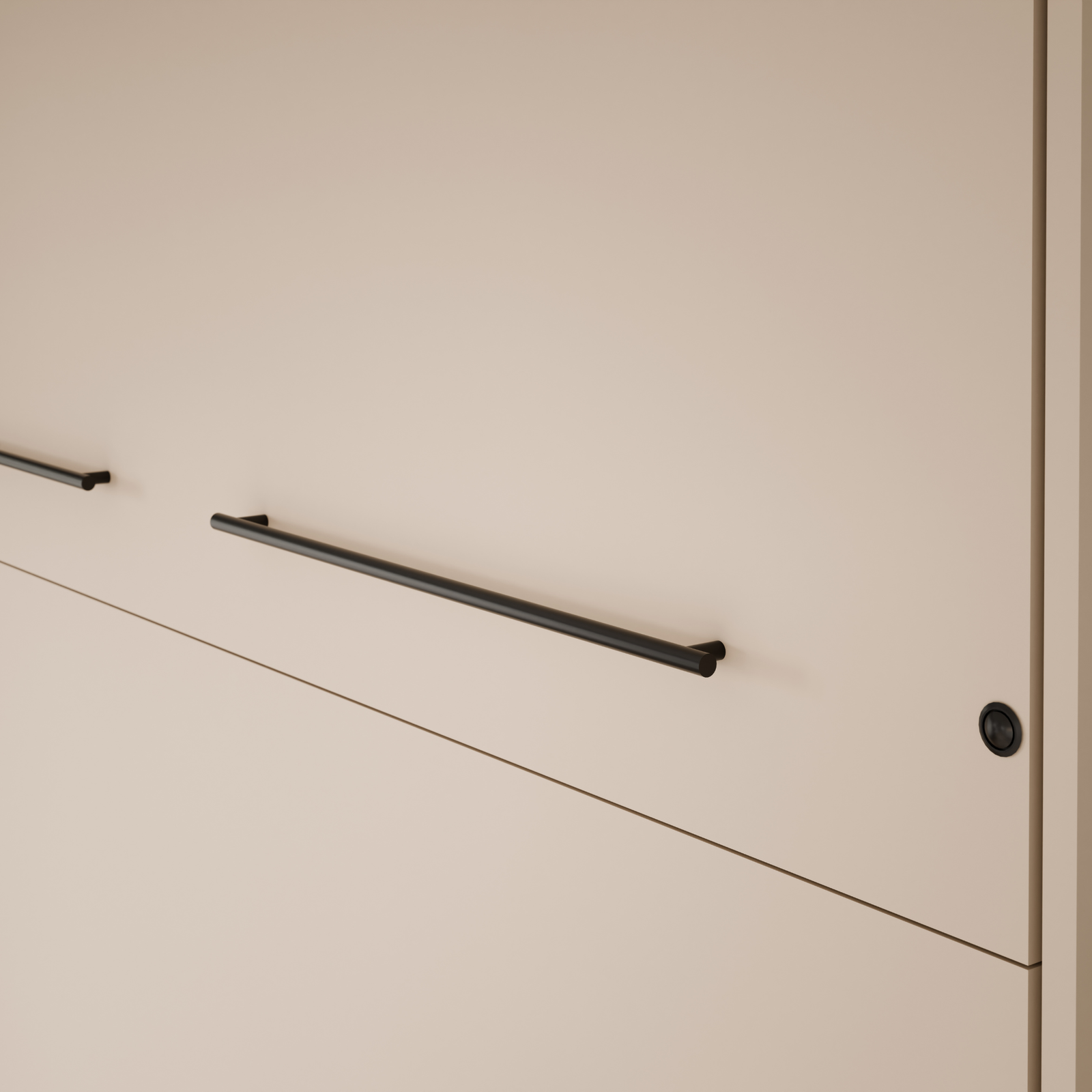 Po zamknięciu, półkotapczan przybiera formę kompaktowej, estetycznej szafy. W ciągu dnia mebel wygląda jak elegancka, minimalistyczna zabudowa ścienna, która po złożeniu pozostawia wolne miejsce do codziennych aktywności. Mechanizm składania jest lekki, bezpieczny i intuicyjny w obsłudze, co sprawia, że codzienne użytkowanie nie wymaga wysiłku.
