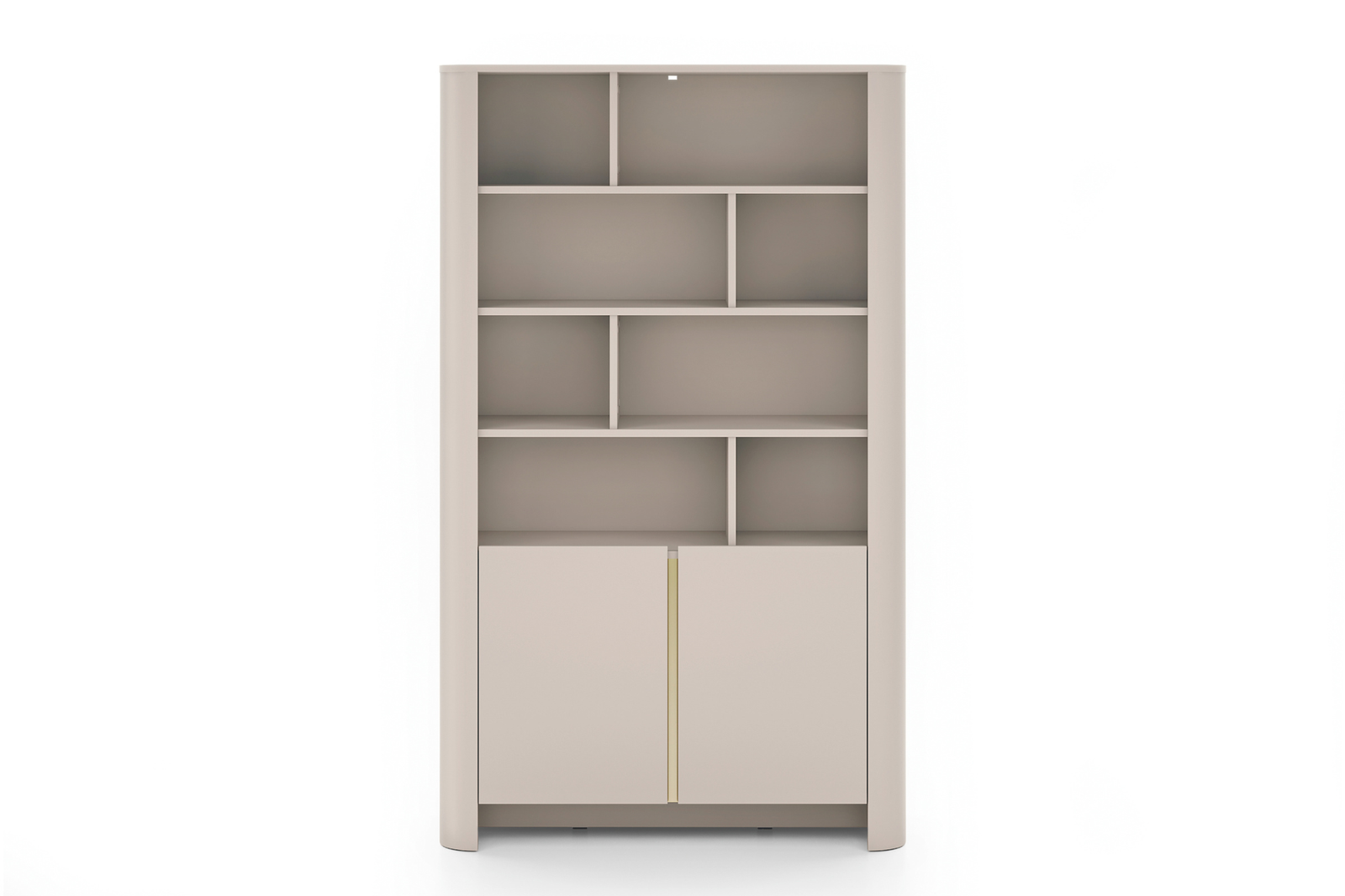 Regał BALI to mebel, który łączy w sobie elegancję i praktyczność. Dzięki subtelnej kolorystyce w odcieniu kaszmir i złotym detalom doskonale podkreśla charakter każdego wnętrza. Idealnie sprawdzi się w salonie, gabinecie czy sypialni, dodając przestrzeni lekkości i stylu. To doskonały wybór dla osób, które cenią wysoką estetykę, funkcjonalność i jakość wykonania.
