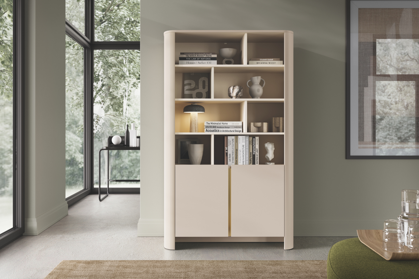 Regał BALI to połączenie minimalistycznej formy, elegancji i funkcjonalności. Jego smukła sylwetka oraz wykończenie w odcieniu kaszmir wprowadzają do wnętrza harmonię i przytulny klimat. Delikatnie zaokrąglone boki, złoty profil dekoracyjny i subtelna struktura drewna nadają meblowi luksusowego charakteru, który idealnie pasuje do wnętrz nowoczesnych, klasycznych i skandynawskich. To mebel, który łączy piękno naturalnych tonów z praktycznym zastosowaniem.