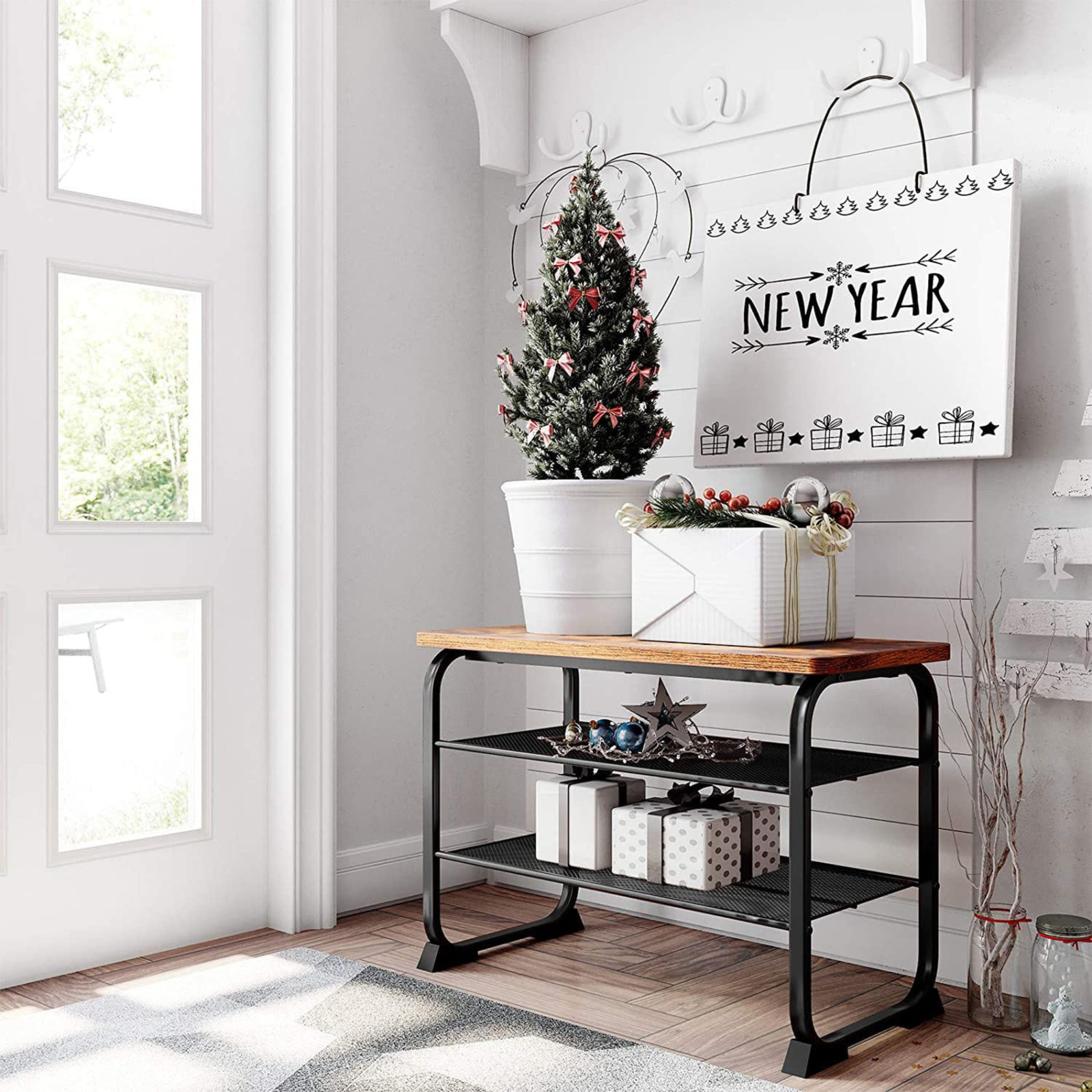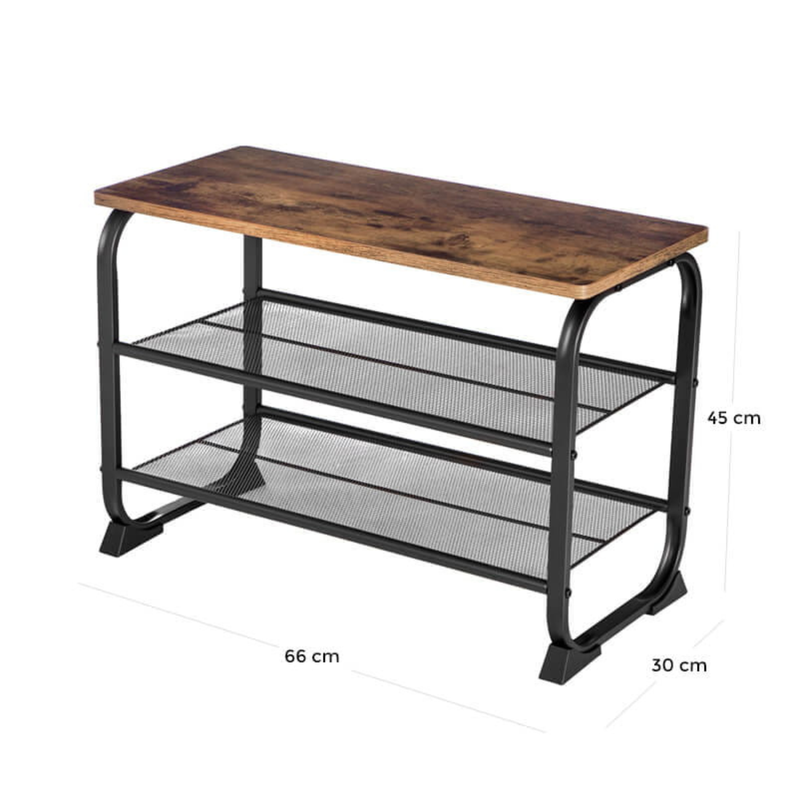 Model RESPO 3 został zaprojektowany tak, aby łączyć estetykę z praktycznością. Dwie solidne półki z metalowej siatki umożliwiają wygodne przechowywanie od 6 do 8 par butów, w zależności od ich rozmiaru. Stabilne siedzisko pozwala w komfortowy sposób usiąść przy zakładaniu lub zdejmowaniu obuwia, jednocześnie oszczędzając miejsce w pomieszczeniu. To doskonały wybór dla tych, którzy chcą połączyć funkcjonalność z eleganckim wyglądem.