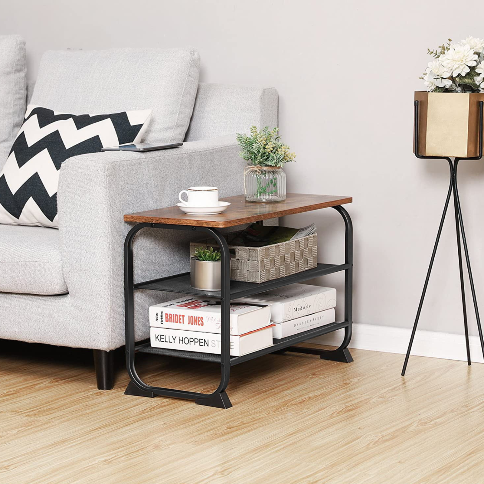 Regał RESPO 3 został wykonany z wytrzymałej płyty wiórowej i mocnej stalowej ramy, dzięki czemu gwarantuje stabilność i odporność na codzienne użytkowanie. Starannie dobrane materiały, rustykalne wykończenie oraz precyzyjnie dopasowane elementy konstrukcji nadają meblowi elegancki wygląd i trwałość na lata. To praktyczny i stylowy dodatek, który doskonale dopełni charakter nowoczesnych wnętrz.