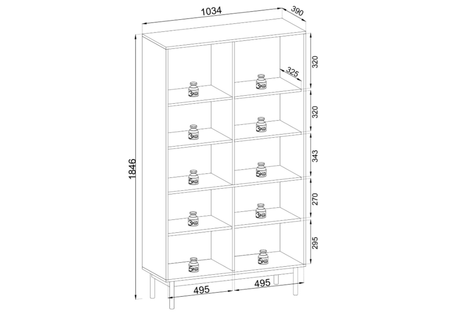 Model SILEN wykonano z wytrzymałej płyty laminowanej o grubości 16 mm, co gwarantuje trwałość i odporność na uszkodzenia. Obrzeża zabezpieczono materiałem ABS 0,5 mm, który chroni krawędzie przed zarysowaniami i wilgocią. Frezowane fronty wyróżniają się subtelną strukturą i eleganckim wzorem, podkreślając estetykę całego regału. Dzięki solidnej konstrukcji i dopracowanym detalom regał SILEN to mebel, który doskonale sprawdzi się zarówno w salonie, jak i w biurze czy sypialni, wprowadzając do wnętrza porządek i styl.