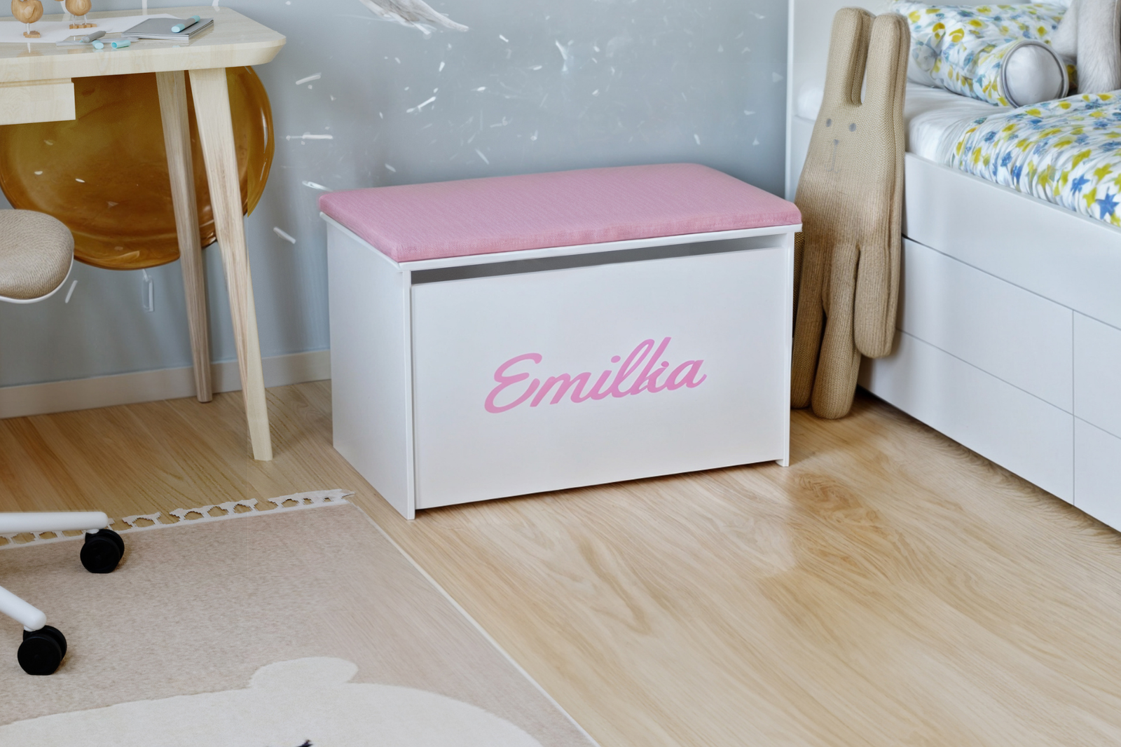 Możliwość wykonania nadruku z imieniem Twoim lub dziecka to wyjątkowe i spersonalizowane rozwiązanie, które nada wnętrzu oryginalny charakter. Dzięki spersonalizowanej skrzyni, każdy może poczuć się wyjątkowo. Ten mały akcent sprawia, że pokój zyskuje indywidualny styl. Zrób sobie lub dziecku niepowtarzalny prezent.