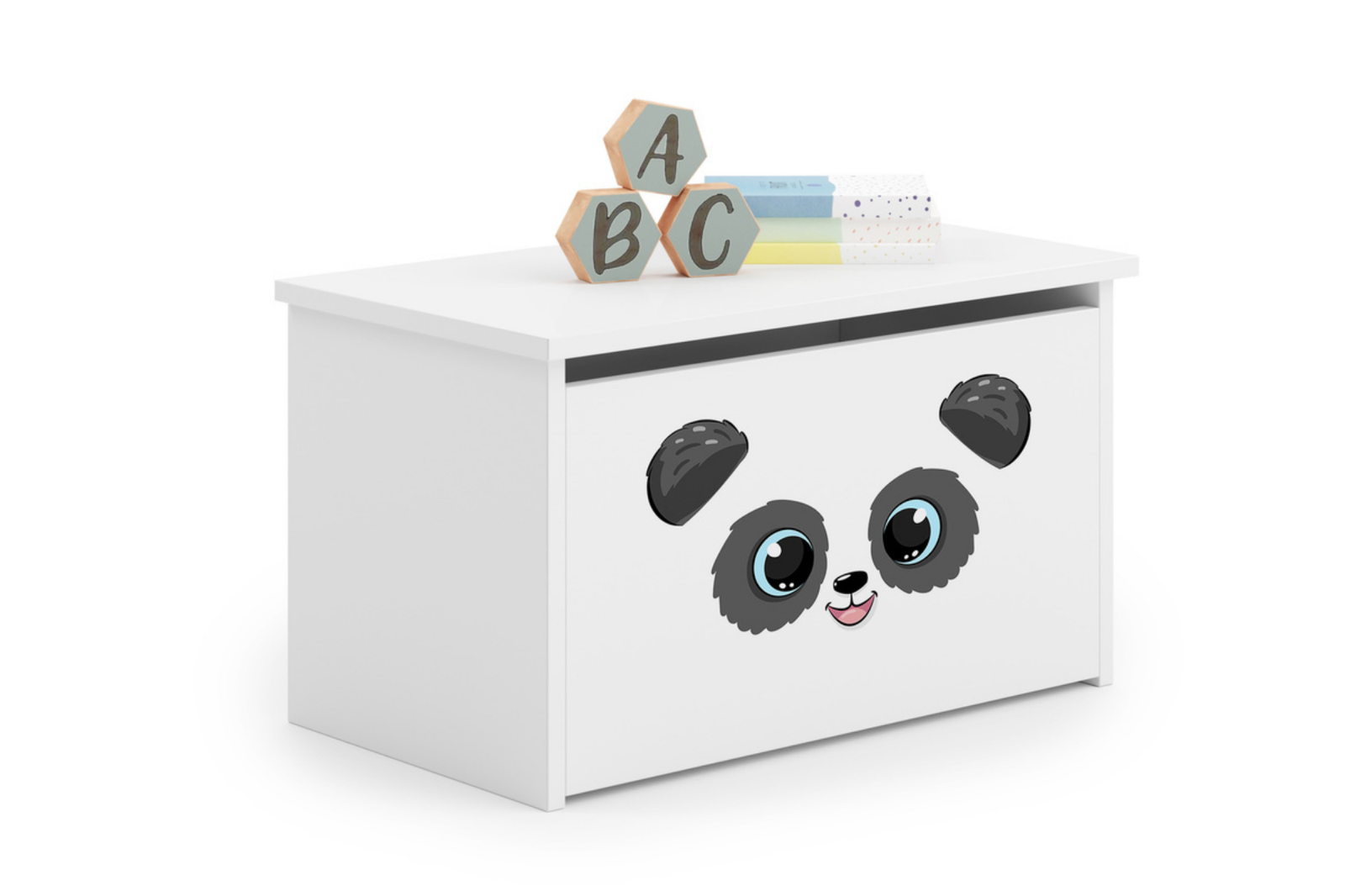 Skrzynię cechuje staranne wykonanie z dbałością o każdy detal. Kufer wykonany został z płyty meblowej laminowanej obustronnie, co zapewnia solidność i odporność na zarysowania. Klapa otwierana jest do góry za sprawą podnośnika gazowego. Wnętrze skrzyni zapewnia mnóstwo miejsca na rzeczy o zróżnicowanej wielkości. Biały kolor ułatwia dopasowanie aranżacyjne, a kolorowa grafika nadrukowana metodą UV zapewnia trwałość na ścieranie i stanowi piękną dekorację, nadając skrzyni wyjątkowego charakteru. Dzięki skrzyni na zabawki sprzątanie pokoju stanie się dziecinnie proste.