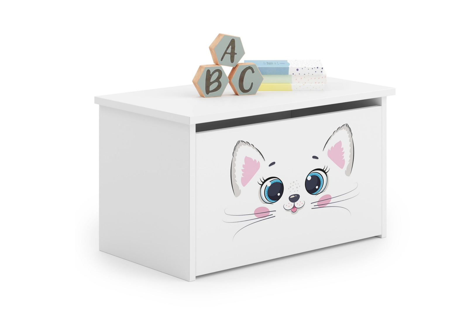 Skrzynię cechuje staranne wykonanie z dbałością o każdy detal. Kufer wykonany został z płyty meblowej laminowanej obustronnie, co zapewnia solidność i odporność na zarysowania. Klapa otwierana jest do góry za sprawą podnośnika gazowego. Wnętrze skrzyni zapewnia mnóstwo miejsca na rzeczy o zróżnicowanej wielkości. Biały kolor ułatwia dopasowanie aranżacyjne, a kolorowa grafika nadrukowana metodą UV zapewnia trwałość na ścieranie i stanowi piękną dekorację, nadając skrzyni wyjątkowego charakteru. Dzięki skrzyni na zabawki sprzątanie pokoju stanie się dziecinnie proste.