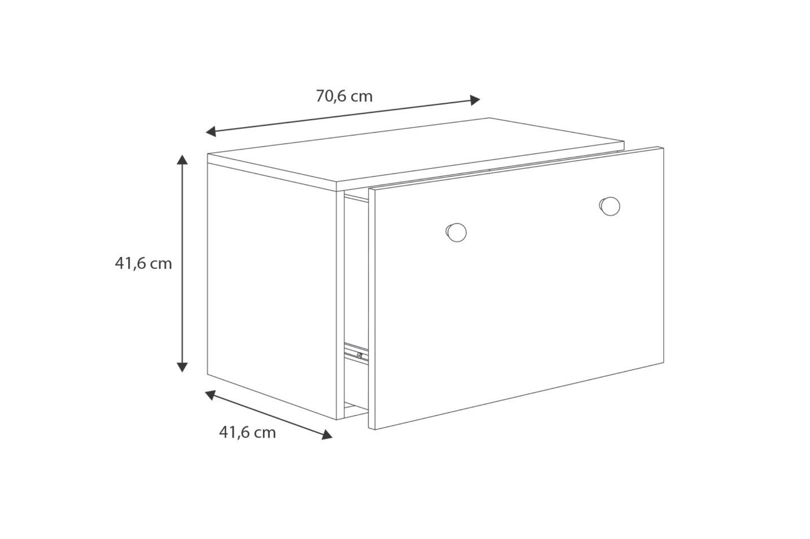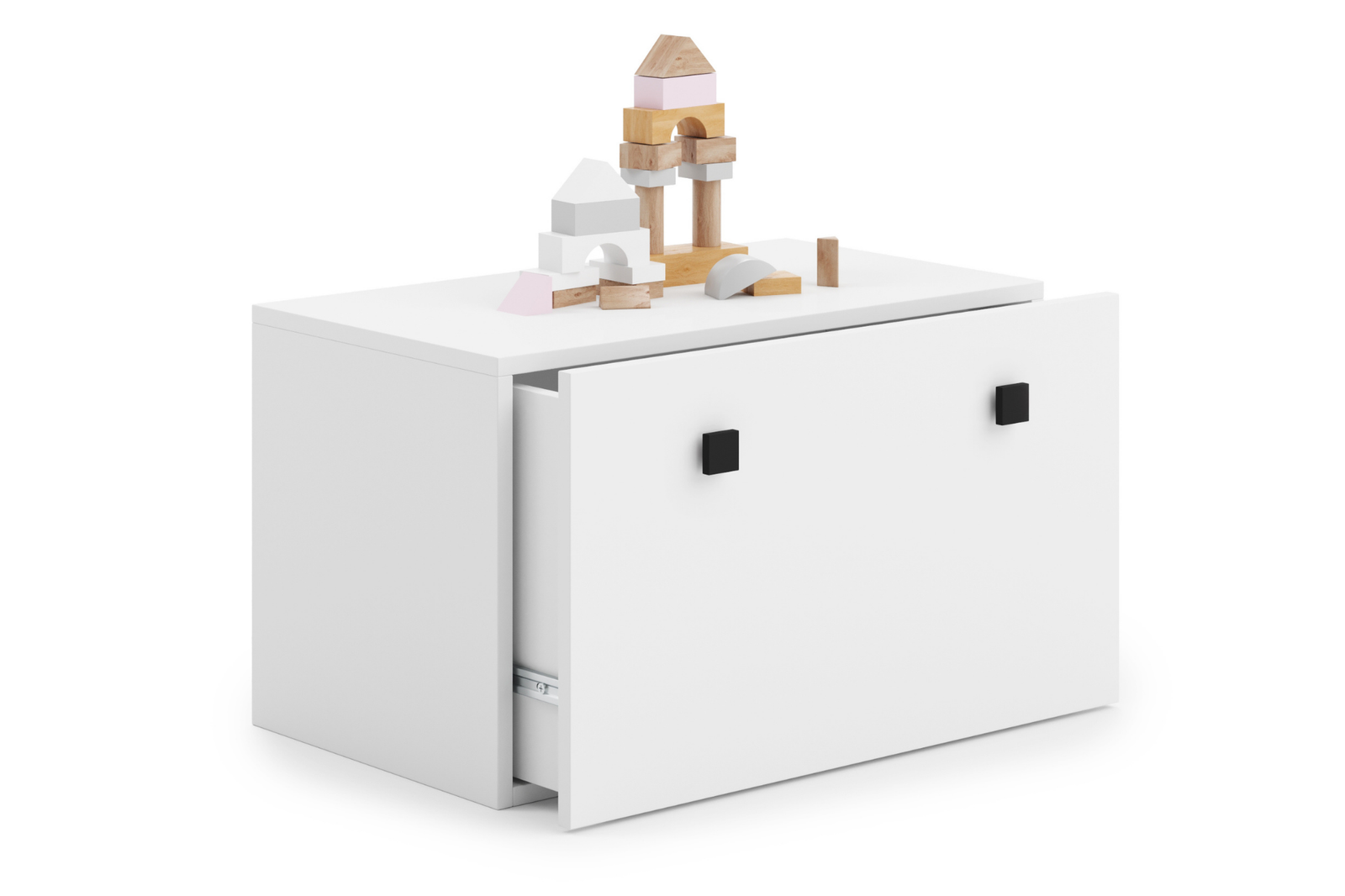 Skrzynię cechuje staranne wykonanie z dbałością o każdy detal. Kufer wykonany został z płyty meblowej laminowanej obustronnie, co zapewnia solidność i odporność na zarysowania. Szuflada z pełnym wysuwem ułatwia wkładanie i wyciąganie rzeczy, a minimalistyczne uchwyty ułatwiają wygodne otwieranie i zamykanie skrzyni. Wnętrze skrzyni zapewnia mnóstwo miejsca na rzeczy o zróżnicowanej wielkości. Biały kolor ułatwia dopasowanie aranżacyjne. Dzięki skrzyni sprzątanie pokoju stanie się dziecinnie proste.