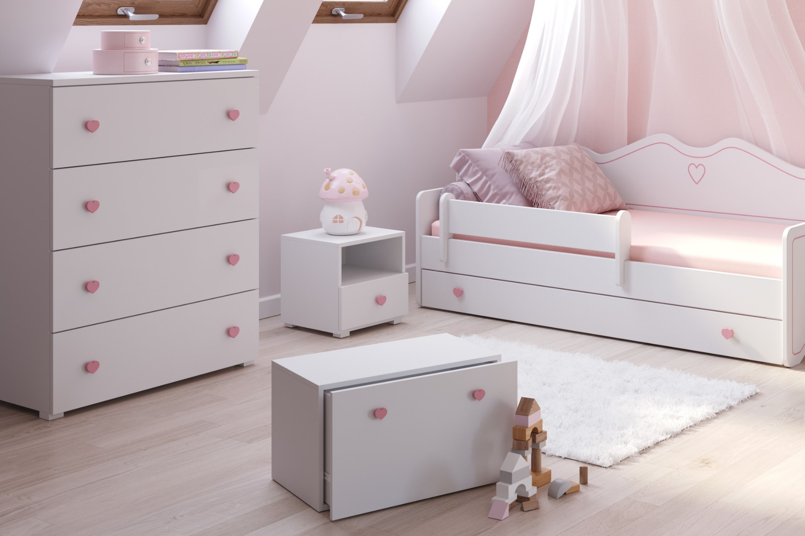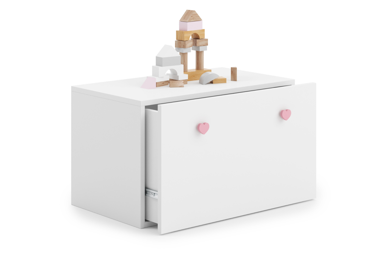 Skrzynia na zabawki INGA - Biała, uchwyty różowe serduszka