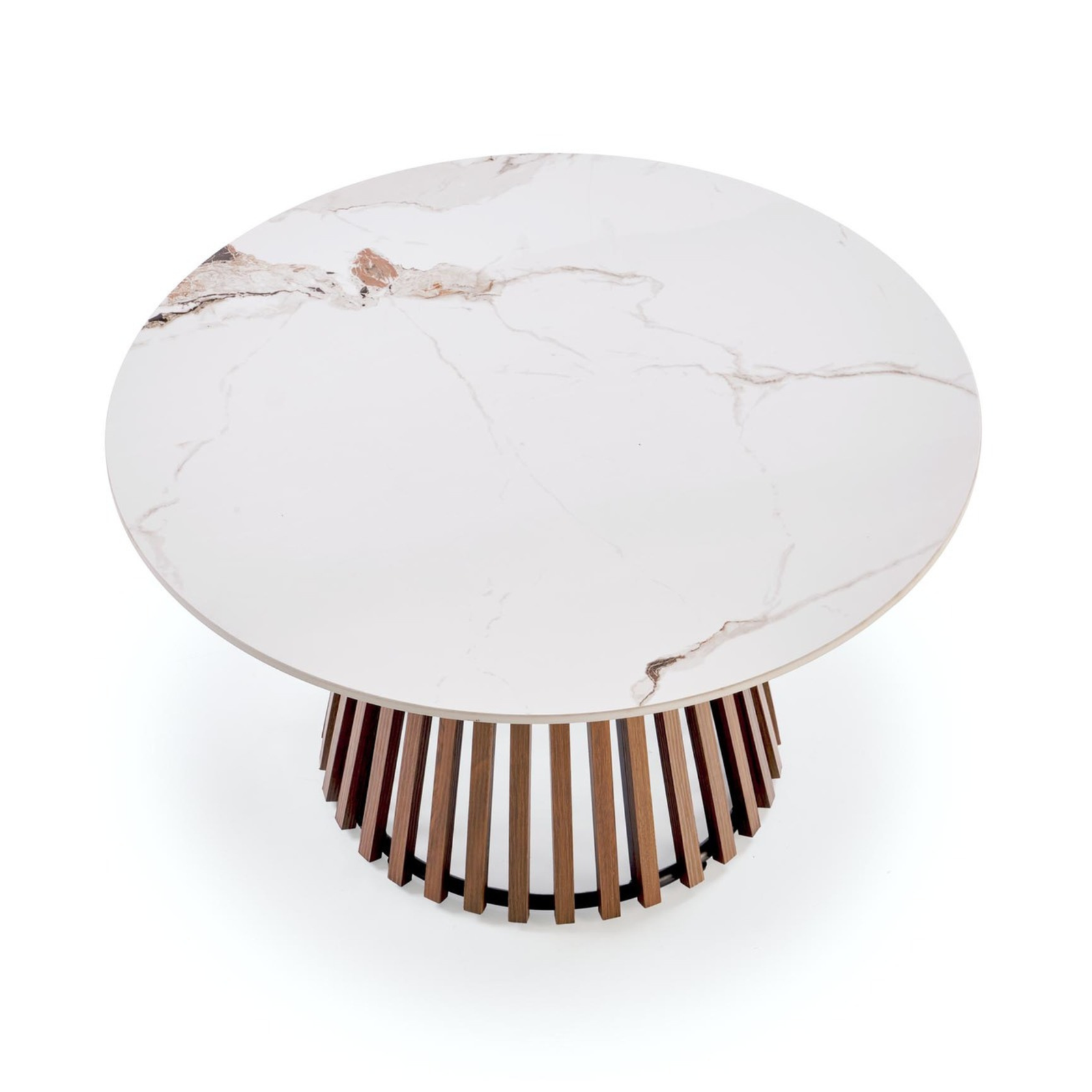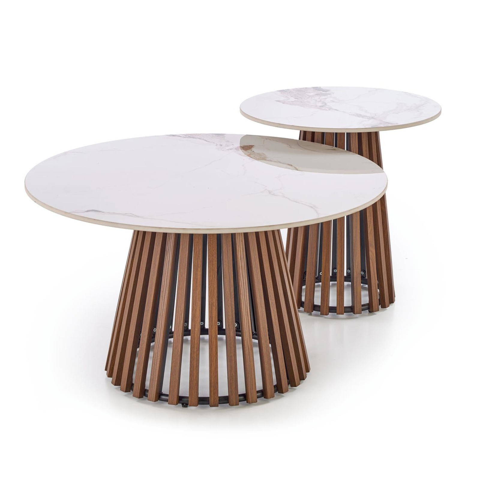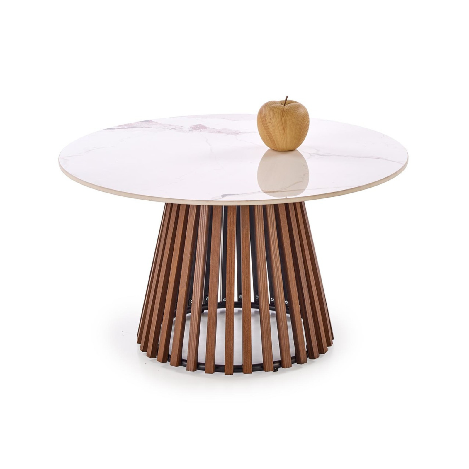 Stolik kawowy ARINA niski okrągły - Orzech / Beżowy