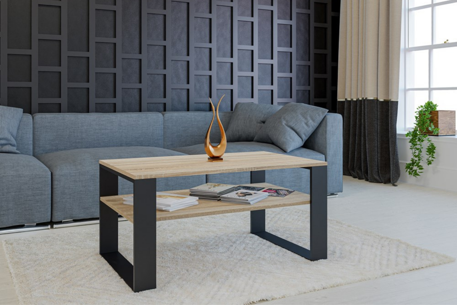 Stolik kawowy to nieodzowny element wyposażenia każdego salonu – miejsce, przy którym toczy się codzienne życie domowników. Ława MODI to połączenie nowoczesnego designu i funkcjonalności, które sprawi, że Twój salon nabierze wyjątkowego charakteru. To idealne miejsce na poranną kawę, popołudniową herbatę czy relaks z książką. Przestronny blat pozwoli wygodnie rozłożyć planszówki lub czasopisma, a dodatkowa półka pod blatem umożliwi przechowywanie drobiazgów, które chcesz mieć zawsze pod ręką.