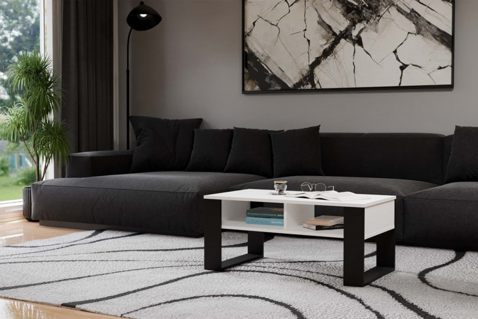 Stolik kawowy MODI to połączenie nowoczesnego designu, funkcjonalności i solidnego wykonania. Nowoczesny stolik kawowy doskonale sprawdzi się w każdym wnętrzu – zarówno w przestronnym salonie, jak i w przytulnym pokoju dziennym. To idealne miejsce na poranną kawę, popołudniowy relaks z książką czy spotkanie z bliskimi. Przestronny blat zapewnia komfort użytkowania, a praktyczne dwie półki pod blatem pozwalają uporządkować drobiazgi, które chcesz mieć zawsze pod ręką. Ława MODI łączy w sobie styl i wygodę na co dzień.