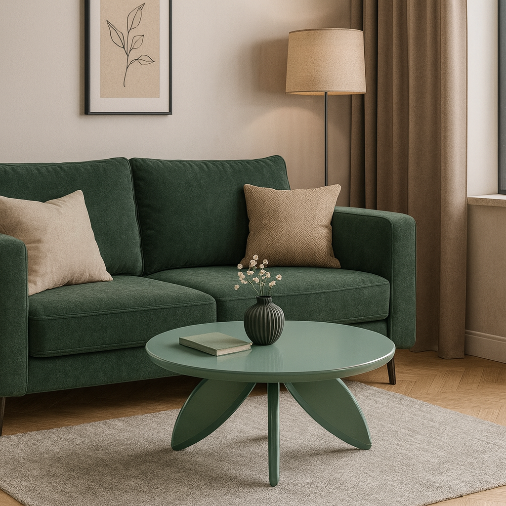 Stolik kawowy RAYA to niska ława o nowoczesnym charakterze, która doskonale wpisuje się w potrzeby współczesnych wnętrz. Jej kompaktowa forma świetnie sprawdzi się zarówno w domowych aranżacjach, jak i w przestrzeniach komercyjnych – od biura podróży po elegancką poczekalnię. Okrągły blat oraz przyjemny, miętowy odcień sprawiają, że mebel wprowadza do wnętrza atmosferę spokoju i świeżości. RAYA łączy w sobie funkcjonalność, wygodę i niepowtarzalny styl, oferując dużą przestrzeń do ekspozycji dekoracji lub materiałów promocyjnych.