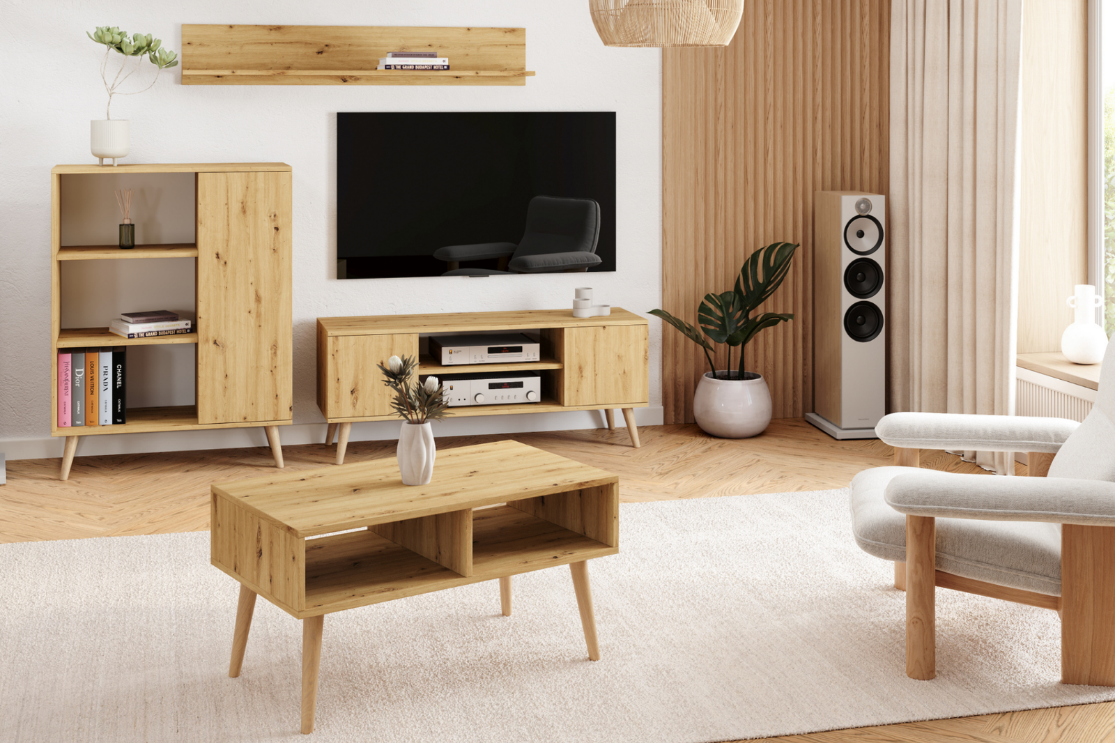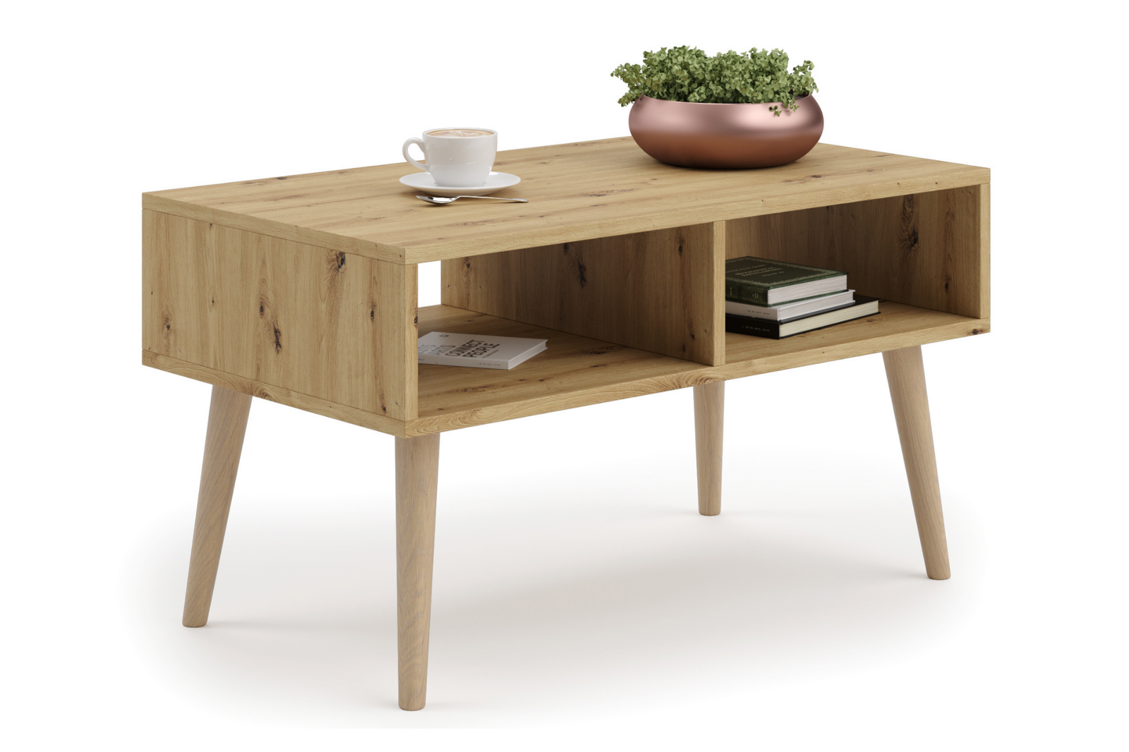 Stolik kawowy SANDI skandynawski nogi drewniane - Dąb Artisan