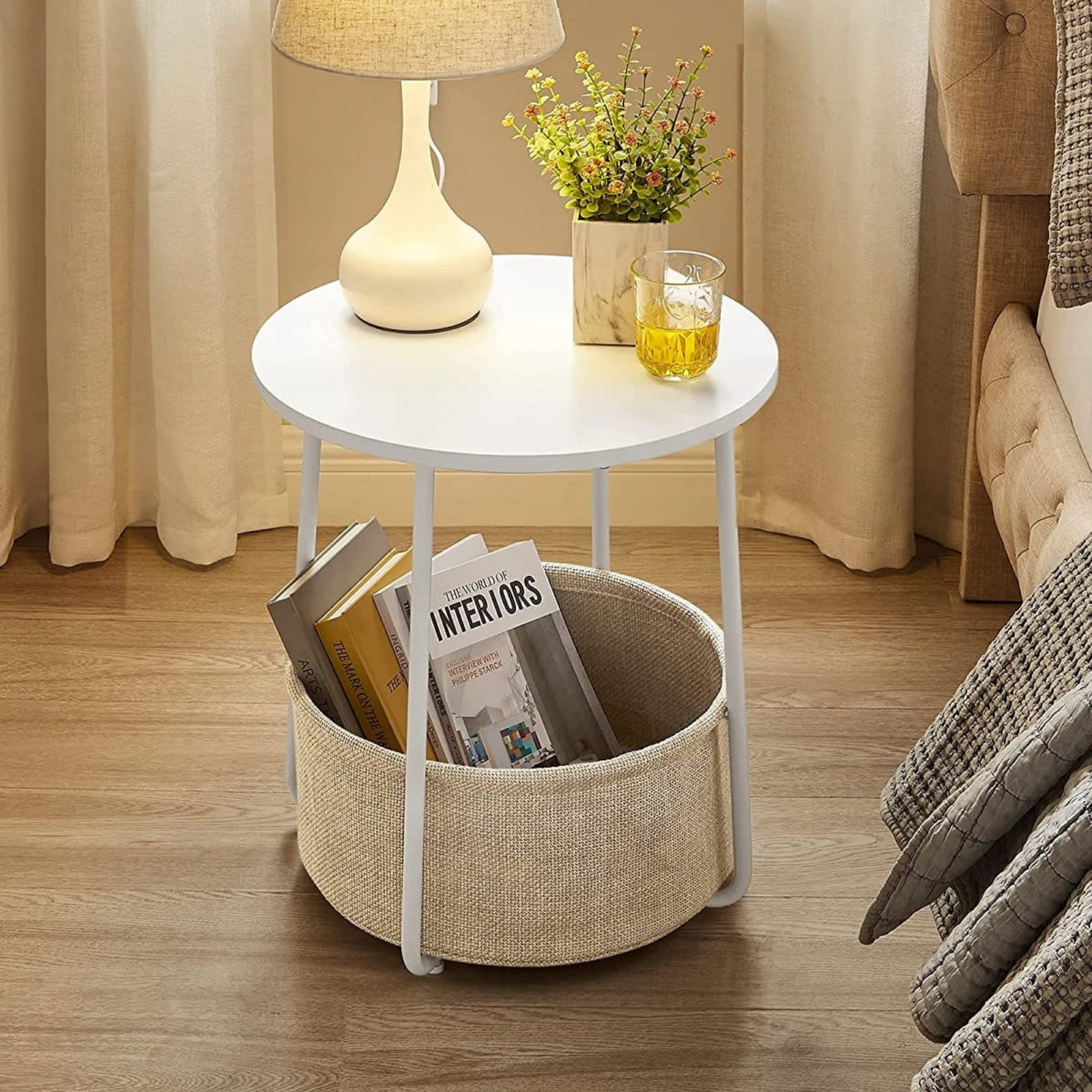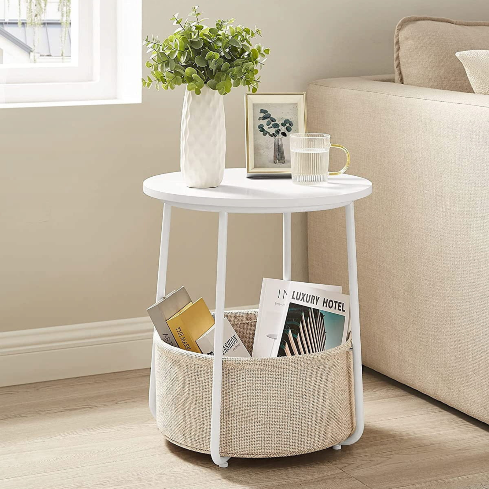 Stolik LUNGO to stylowy i praktyczny mebel, który idealnie łączy nowoczesny wygląd z wygodą użytkowania. Może pełnić rolę stolika bocznego w salonie lub stolika nocnego w sypialni – w zależności od Twoich potrzeb i wystroju wnętrza. Jego subtelny, okrągły kształt oraz połączenie bieli z beżowymi akcentami wprowadzą do pomieszczenia lekkość i przytulny klimat. To doskonały wybór dla osób ceniących elegancję i funkcjonalność w jednym.