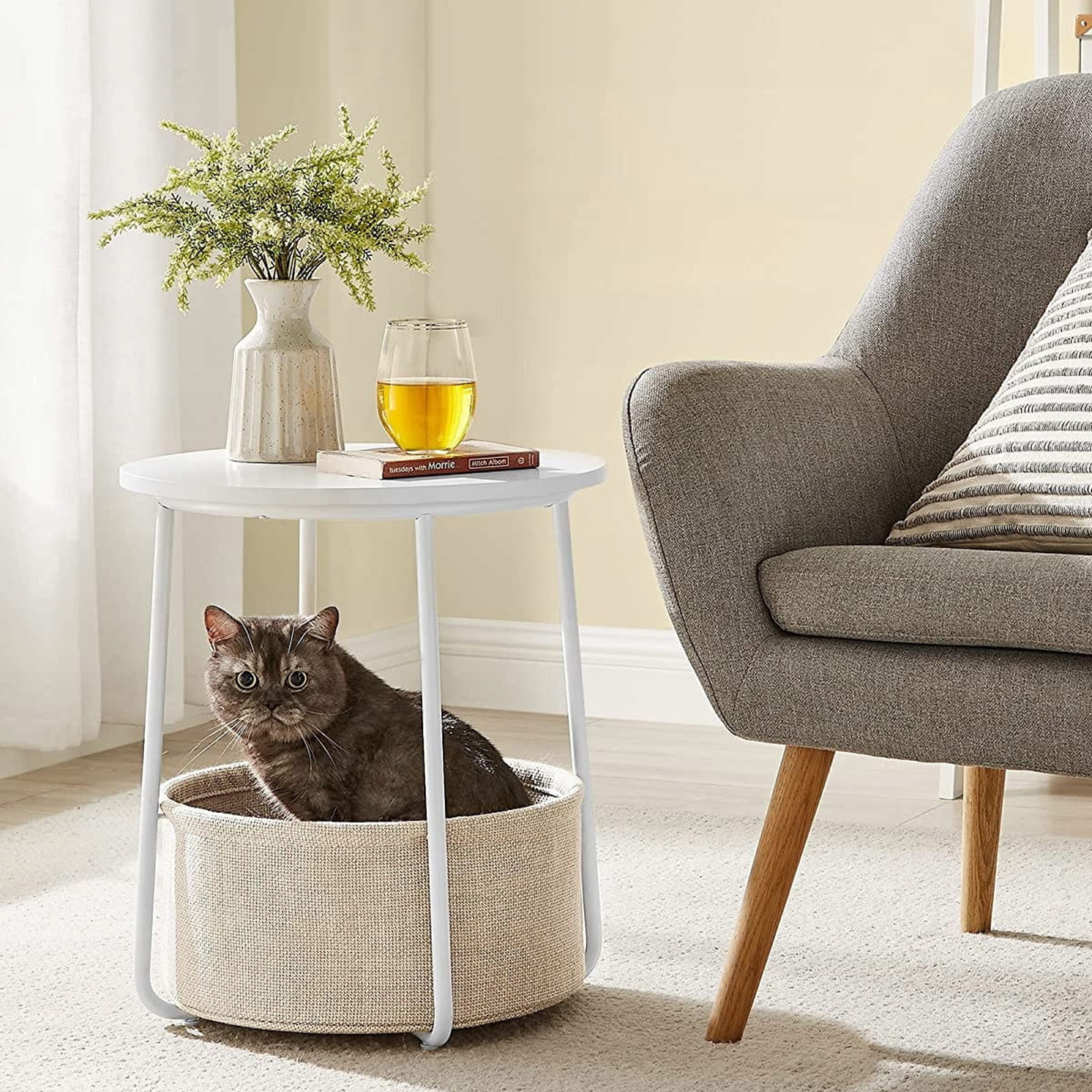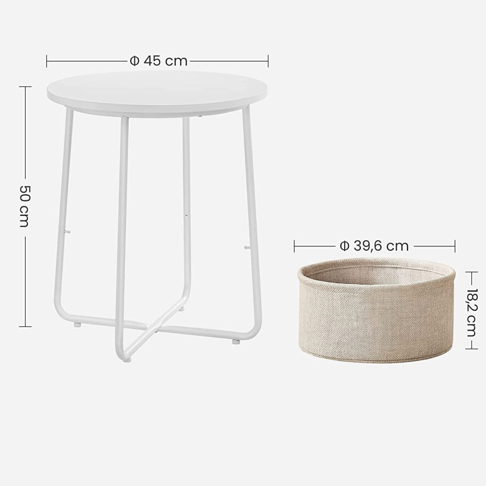 Stolik LUNGO wykonano z wysokiej jakości płyty wiórowej, stali oraz tkaniny poliestrowej, co gwarantuje trwałość i solidność konstrukcji. Jasna kolorystyka w odcieniach bieli i beżu sprawia, że doskonale wpasuje się zarówno w nowoczesne, jak i klasyczne aranżacje. Starannie dopracowane detale oraz lekka forma mebla nadają mu ponadczasowego charakteru, który podkreśli estetykę każdego wnętrza.
