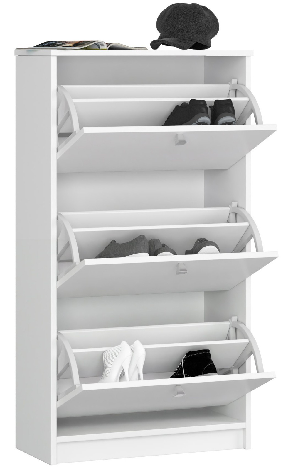 Biała szafka na buty – 3 uchylne szuflady, prosty design i wygoda