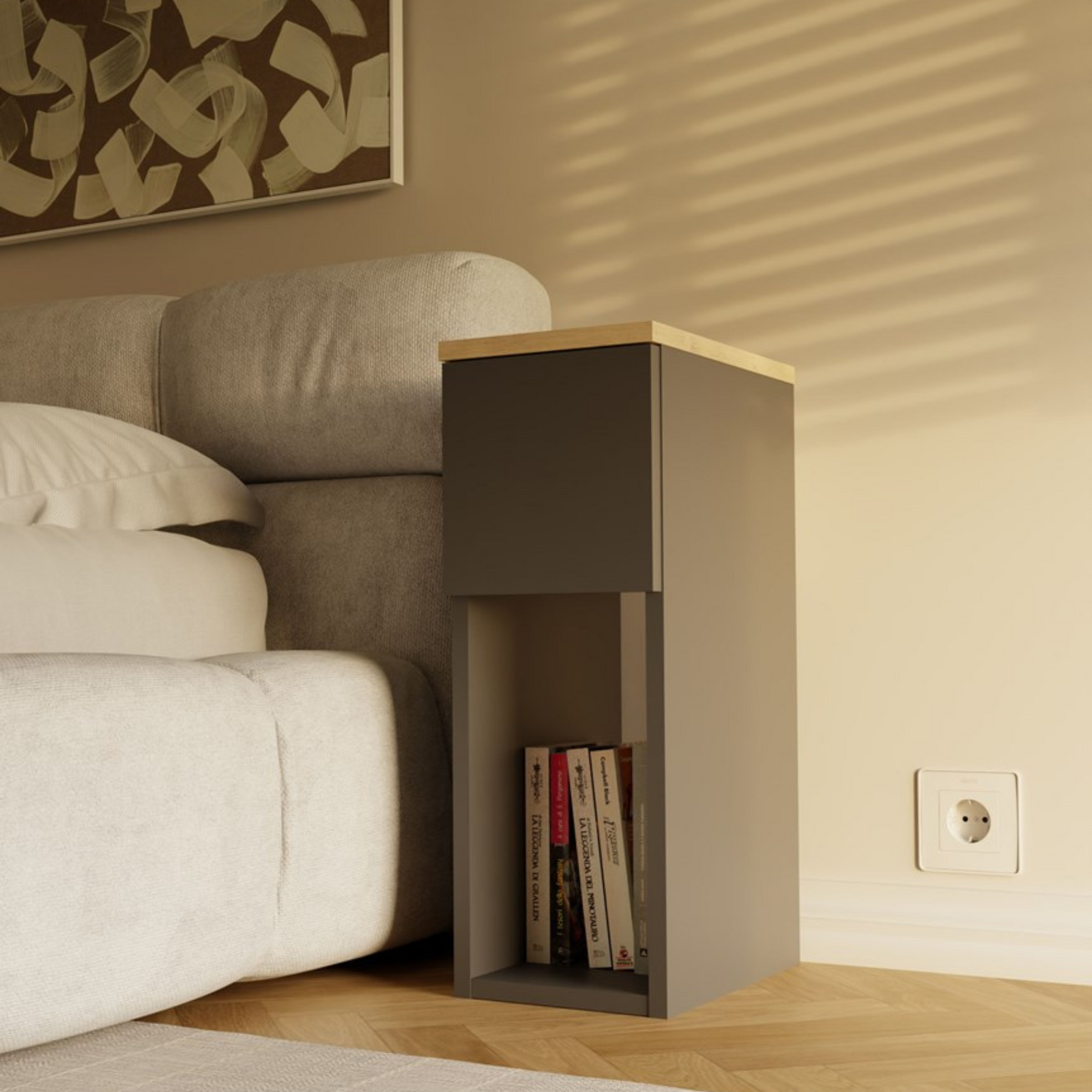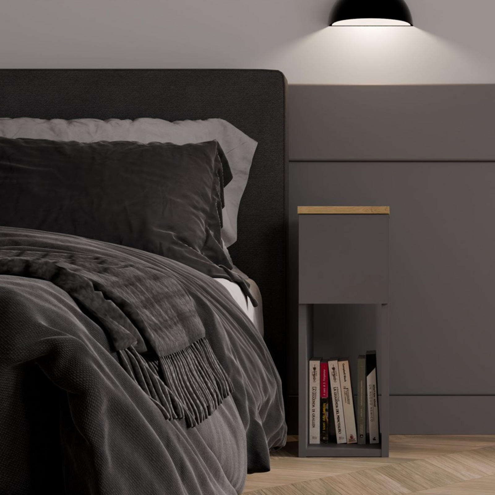 Szafka nocna GALA Stolik nocny do sypialni - Antracyt / Dąb Artisan