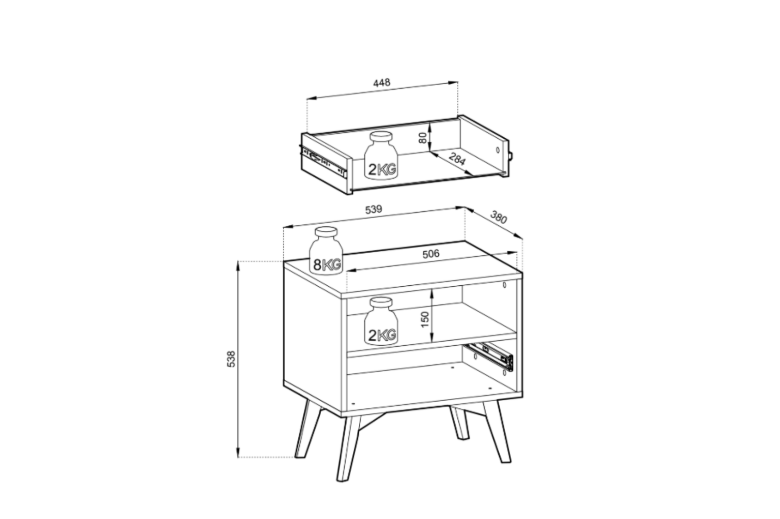 • Szuflada i półka pozwalają zachować porządek przy łóżku