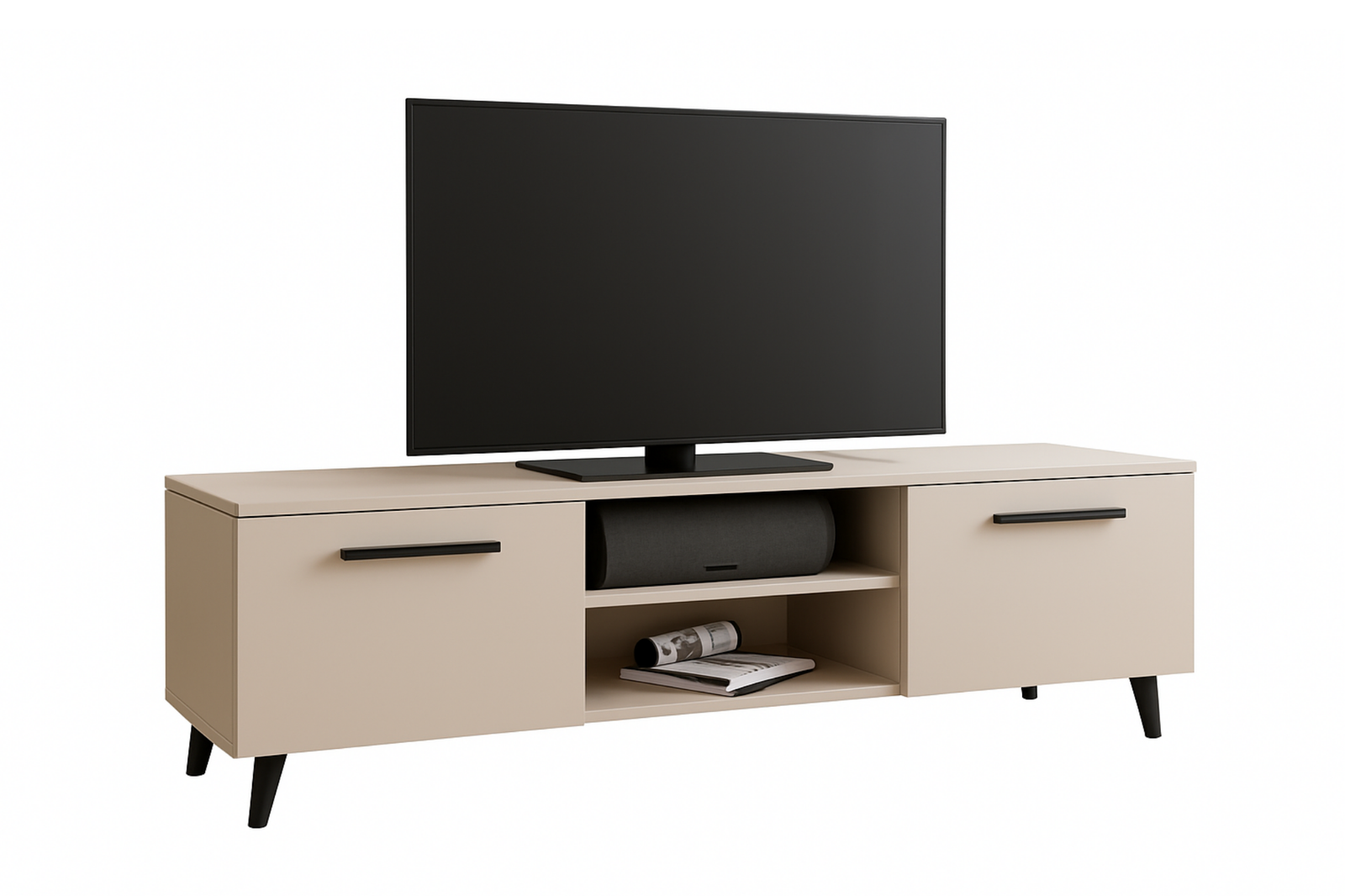 Szafka RTV BERGA 150 cm skandynawska, nogi drewniane - Kaszmir